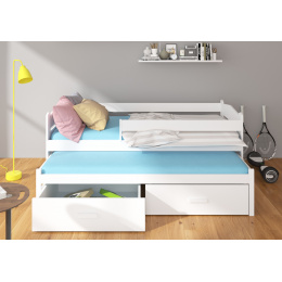 Dvojlůžko s bariérkou TIARRO je ideálním řešením do pokoje pro dva sourozence. Dokonale se osvědčí také v případě návštěvy nečekaných hostů. Model je dostupný ve dvou velikostech a v mnoha barvách, které se hodí do každého uspořádání. Postel má dvě praktické a funkční zásuvky na ložní prádlo a odolný a pevný rám vyrobený z borovicového dřeva. Pro zvýšení bezpečnosti vašeho dítěte byl model doplněn o další zábradlí chránící před pádem. Matrace nejsou součástí postele.