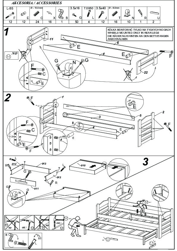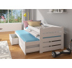 Dvojlůžko s bariérkou TIARRO je ideálním řešením do pokoje pro dva sourozence. Dokonale se osvědčí také v případě návštěvy nečekaných hostů. Model je dostupný ve dvou velikostech a v mnoha barvách, které se hodí do každého uspořádání. Postel má dvě praktické a funkční zásuvky na ložní prádlo a odolný a pevný rám vyrobený z borovicového dřeva. Pro zvýšení bezpečnosti vašeho dítěte byl model doplněn o další zábradlí chránící před pádem. Spolu s postelí obdržíte sadu matrací.