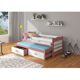 Dvojlůžko s bariérkou TIARRO je ideálním řešením do pokoje pro dva sourozence. Dokonale se osvědčí také v případě návštěvy nečekaných hostů. Model je dostupný ve dvou velikostech a v mnoha barvách, které se hodí do každého uspořádání. Postel má dvě praktické a funkční zásuvky na ložní prádlo a odolný a pevný rám vyrobený z borovicového dřeva. Pro zvýšení bezpečnosti vašeho dítěte byl model doplněn o další zábradlí chránící před pádem. Spolu s postelí obdržíte sadu matrací.