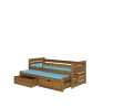 Dvojlůžko s bariérkou a matracemi TOMI 180x80 Dub