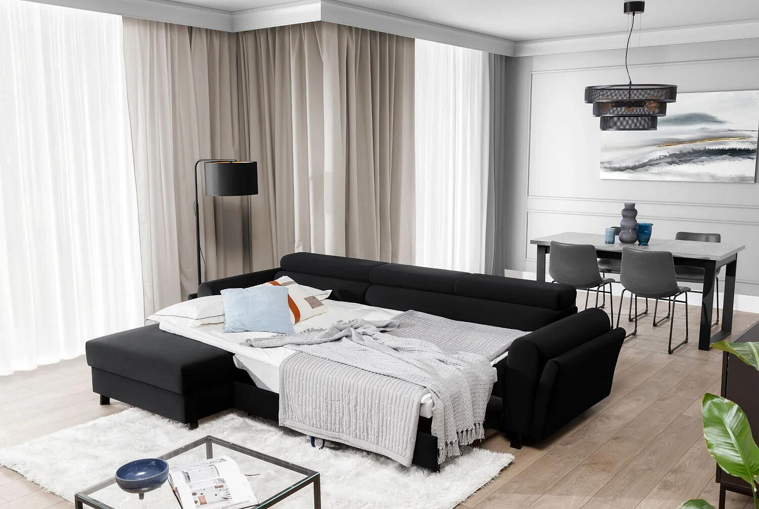 Jednou z hlavních předností této sedací soupravy je její praktická funkčnost. Díky možnosti rozkládání se snadno promění v pohodlné lůžko s plochou na spaní 110x240 cm, což je ideální pro hosty nebo pro příležitostné přespání. Navíc je vybavena úložným prostorem, který poskytuje dostatek místa pro uložení lůžkovin, polštářů nebo jiných potřebných věcí, čímž pomáhá udržovat váš obývací prostor čistý a uspořádaný.