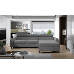 Mariall je klasická, přesto pohodlná a elegantní rohová pohovka ve tvaru L, měřící 300 x 190 x 98 cm. Jeho charakteristické rysy zahrnují: nastavitelné opěrky hlavy, čalouněné opěradlo pohovky, elegantní kovové nohy s dřevěným povrchem a hluboké, měkké sedadlo vyrobené z inovativní pěny T30 a HR, které jsou odolné vůči deformaci a poškození. Kromě toho zaručují maximální pohodlí jak během denního odpočinku, tak při spánku. Díky své funkci spaní je Mariall multifunkční kus nábytku. Po rozložení pohovky pomocí intuitivního a jednoduchého mechanismu delfín získáme prostornou postel o rozměrech 110 x 240 cm a také prostorný, hluboký úložný prostor na lůžkoviny umístěný v otomanu. Pokud hledáte funkční, a přitom klasický a elegantní kus nábytku - může být jen jedna volba - s čistým svědomím doporučujeme rohovou pohovku Mariall, která je odpovědí na všechny otázky.