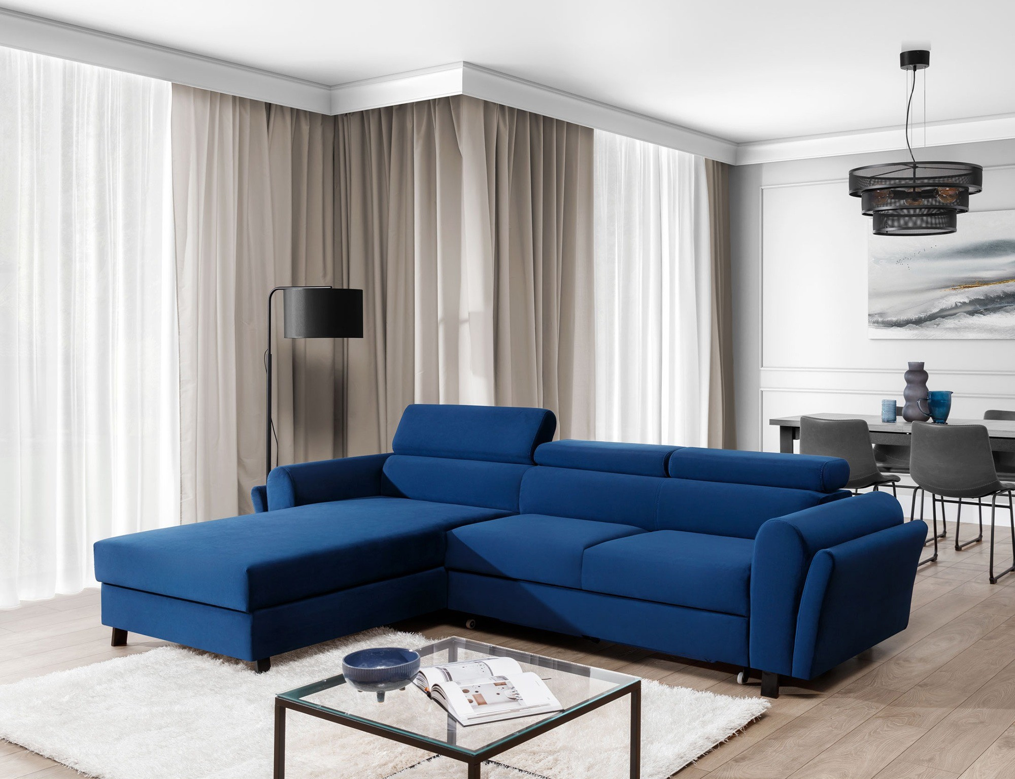 Mariall je klasická, přesto pohodlná a elegantní rohová pohovka ve tvaru L, měřící 300 x 190 x 98 cm. Jeho charakteristické rysy zahrnují: nastavitelné opěrky hlavy, čalouněné opěradlo pohovky, elegantní kovové nohy s dřevěným povrchem a hluboké, měkké sedadlo vyrobené z inovativní pěny T30 a HR, které jsou odolné vůči deformaci a poškození. Kromě toho zaručují maximální pohodlí jak během denního odpočinku, tak při spánku. Díky své funkci spaní je Mariall multifunkční kus nábytku. Po rozložení pohovky pomocí intuitivního a jednoduchého mechanismu delfín získáme prostornou postel o rozměrech 110 x 240 cm a také prostorný, hluboký úložný prostor na lůžkoviny umístěný v otomanu. Pokud hledáte funkční, a přitom klasický a elegantní kus nábytku - může být jen jedna volba - s čistým svědomím doporučujeme rohovou pohovku Mariall, která je odpovědí na všechny otázky.