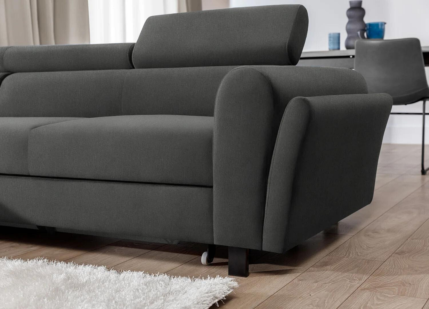Jednou z hlavních předností této sedací soupravy je její praktická funkčnost. Díky možnosti rozkládání se snadno promění v pohodlné lůžko s plochou na spaní 110x240 cm, což je ideální pro hosty nebo pro příležitostné přespání. Navíc je vybavena úložným prostorem, který poskytuje dostatek místa pro uložení lůžkovin, polštářů nebo jiných potřebných věcí, čímž pomáhá udržovat váš obývací prostor čistý a uspořádaný.