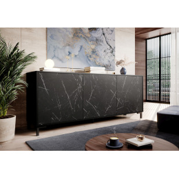 CASHBOARD 200 3D Rozměry: š/š/g - 80,5cm/200cm/45cm Materiál: Kostra: matná laminovaná deska 16 mm Čela: matná laminovaná deska 16 mm, imitace mramoru Hrany: ABS Nožičky: plast Rukojeť: systém PUSH-CLICK