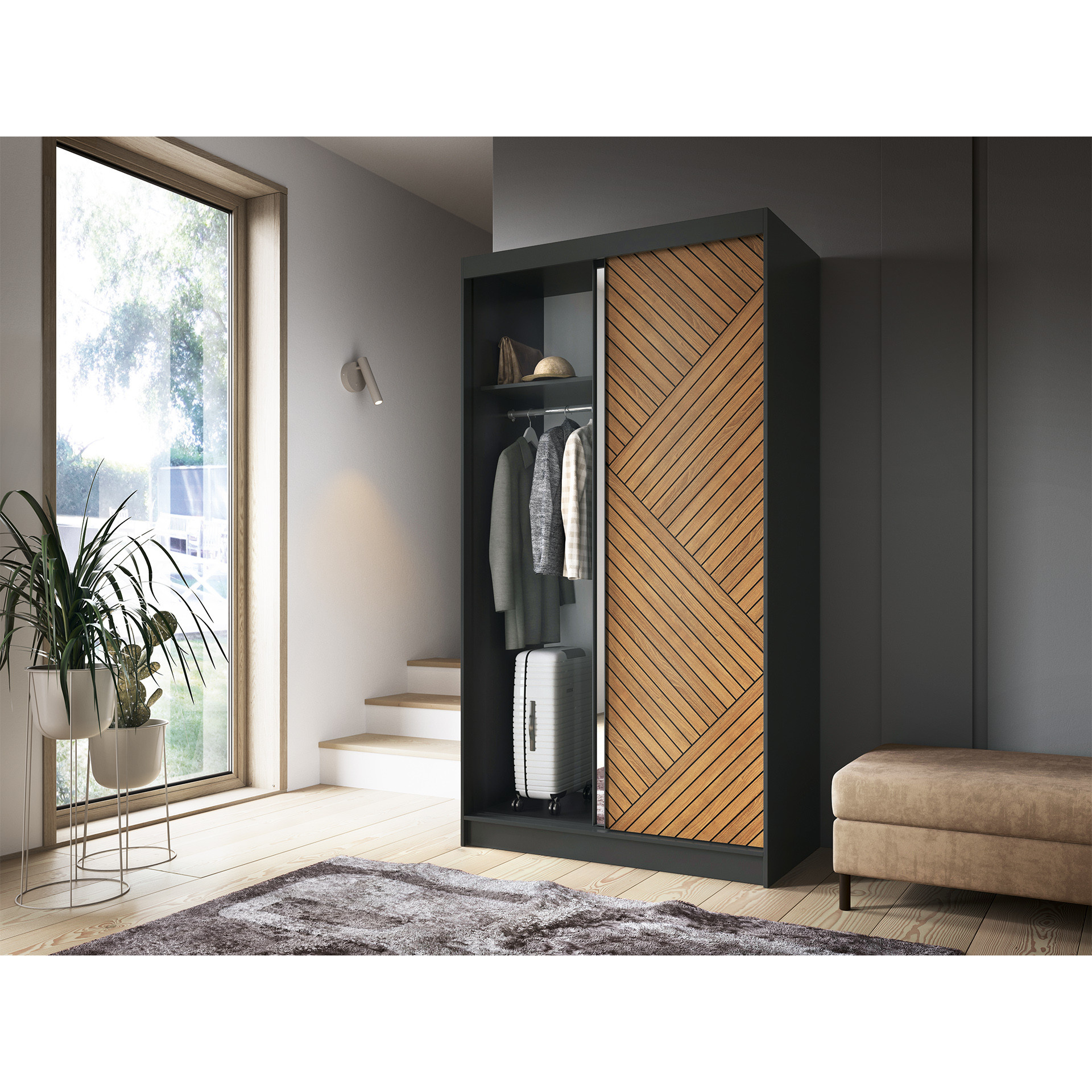 Posuvná skříň MARRPHY II, Dub Karamel/Černá Mat