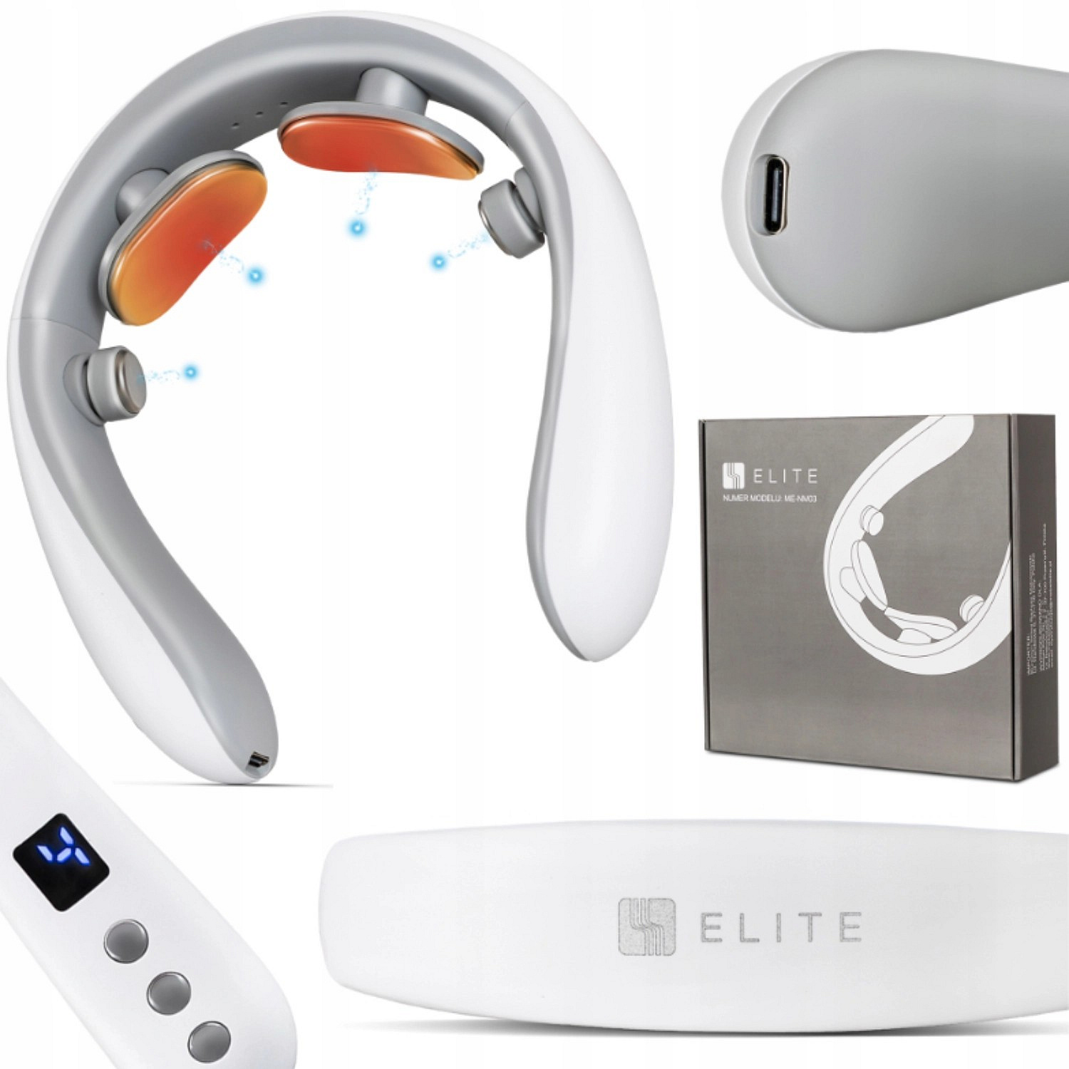 Masážní přístroj na krk ME-NM03 s funkcí ohřevu bílý/šedý