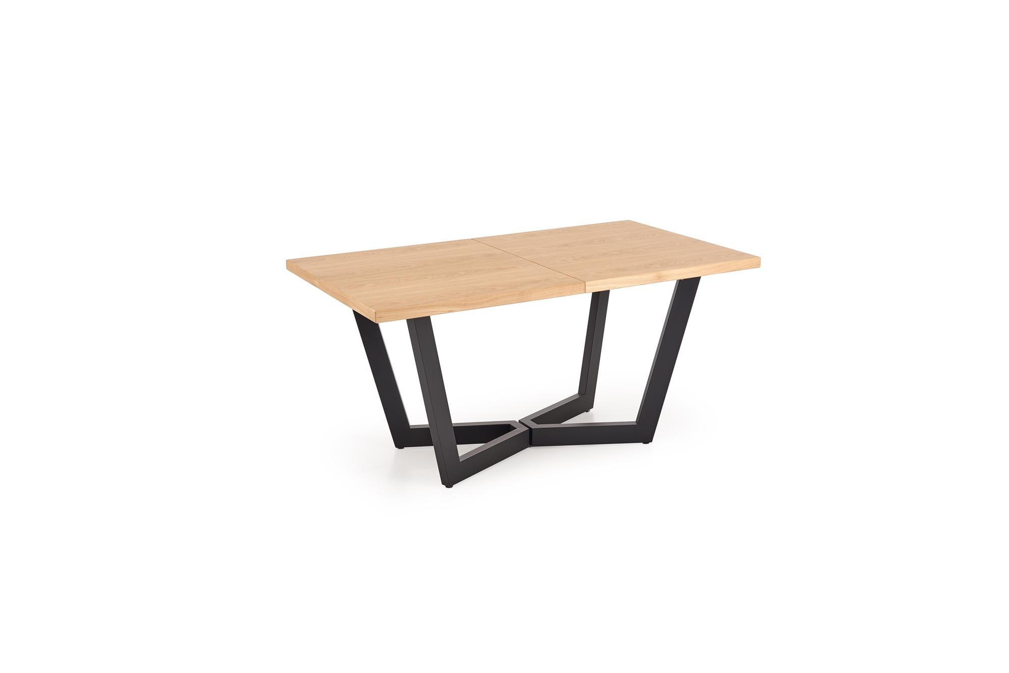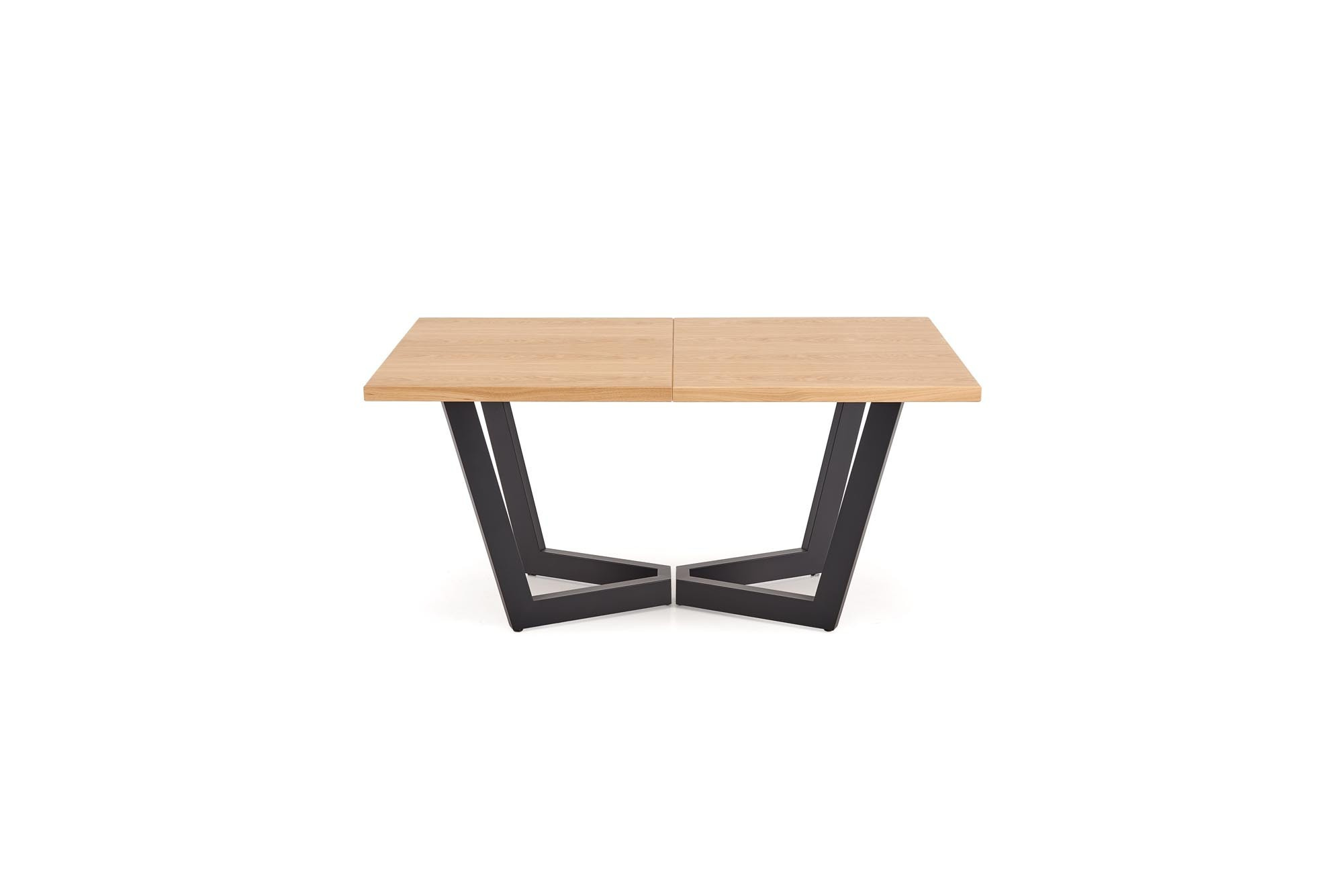 rozkládací stůl, rozměry: 160-250(340)/90/77 cm, materiál: deska - dýhovaná deska, na okrajích masivní dřevo, nohy - ocel lakovaná práškovou barvou, barva: deska – přírodní dub, nohy - černé, * v opci prodloužení k deskám MASSIVE 2 (rozměry: 45x90 cm - 2 ks.