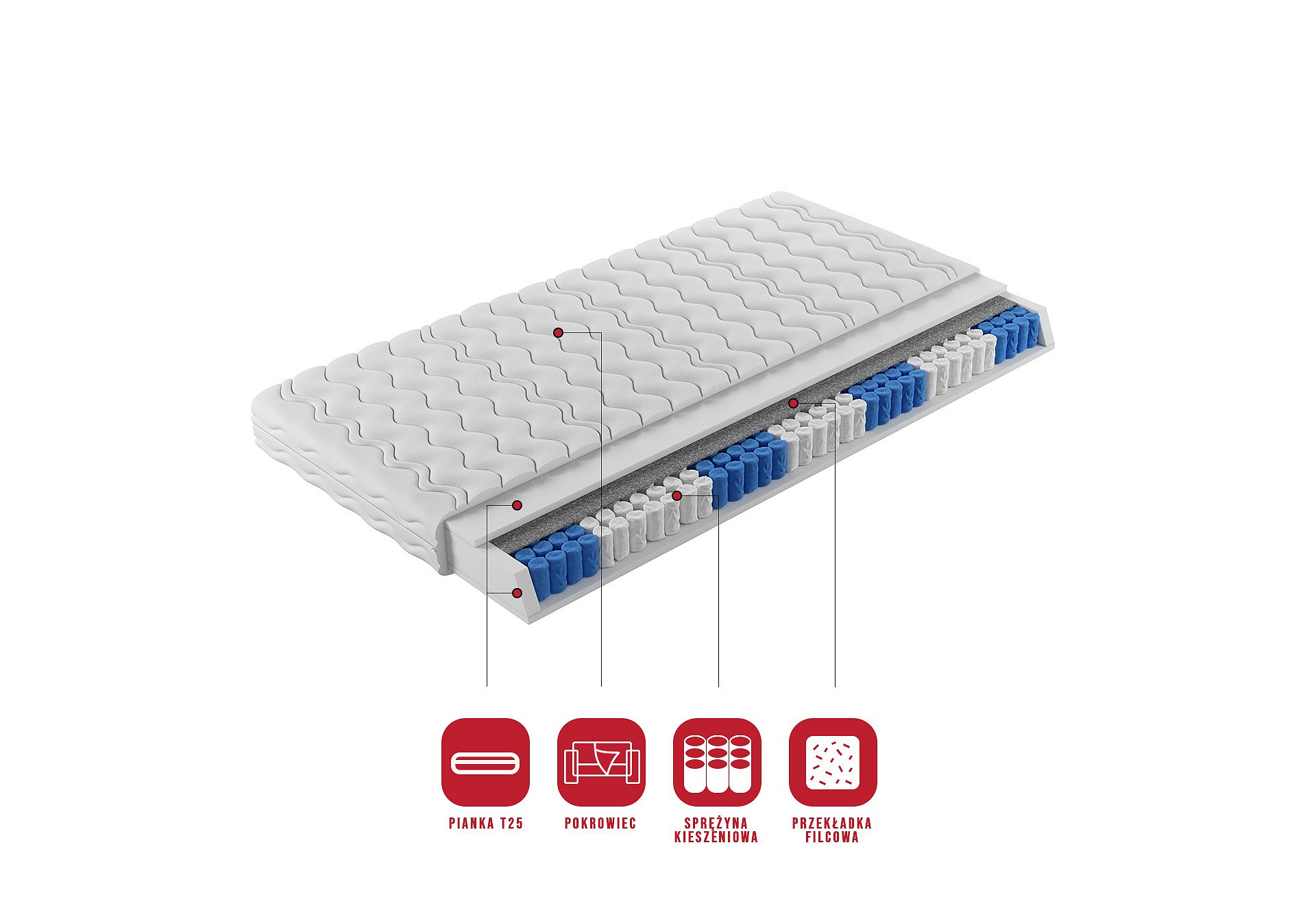 | Materiál | Pěna T25; Kapesní pružina; Plstěná podložka |