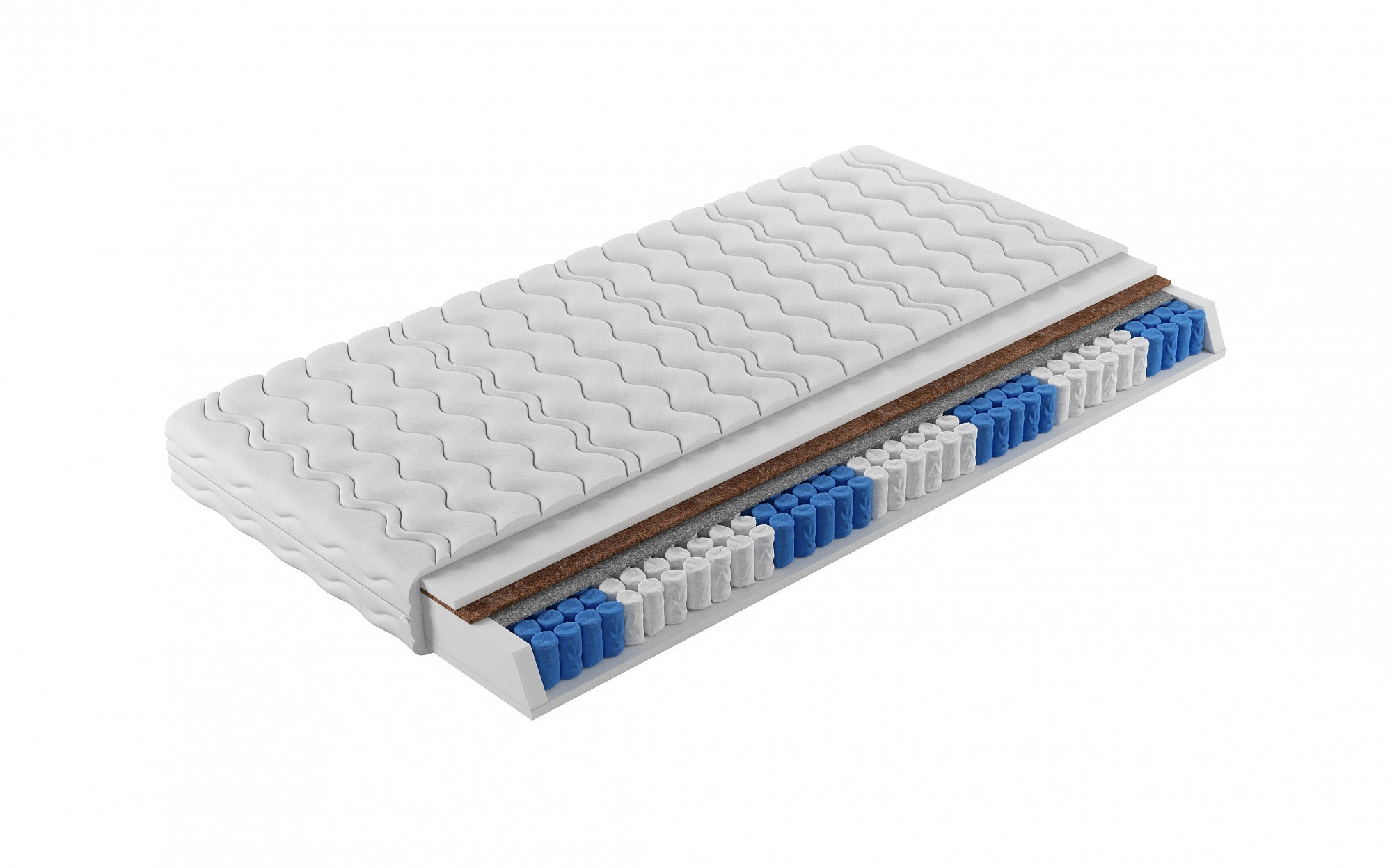 | Materiál | Pěna T25; Kapesní pružina; Plstěná podložka; Kokosová deska |