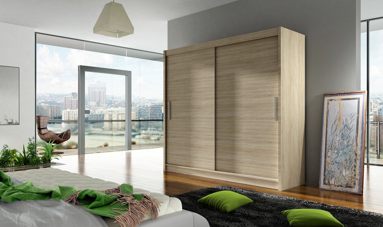 Skříň Berger s posuvnými dveřmi, je vyrobena z kvalitního lamina o síle 16 mm a hrany jsou ukončeny ABS lištou. Vodící lišty jsou vyrobeny z odolného hliníku a splňují požadavky pro každodenní užívání. Skříň nabízíme ve čtyřech odstínech. Díky svým rozměrům a uspořádání poskytuje dostatek úložného prostoru. Skříň je dodávána v demontu a součástí je montážní plánek včetně všech potřebných spojovacích materiálů. Vyobrazené dekorace nejsou v ceně.