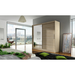 Skříň Berger s posuvnými dveřmi, je vyrobena z kvalitního lamina o síle 16 mm a hrany jsou ukončeny ABS lištou. Vodící lišty jsou vyrobeny z odolného hliníku a splňují požadavky pro každodenní užívání. Skříň je doplněna zrcadlem, které jí dodává elegantní vzhled a místnost opticky zvětší a prosvětlí. Nabízíme ji ve čtyřech odstínech. Díky svým rozměrům a uspořádání poskytuje dostatek úložného prostoru. Skříň je dodávána v demontu a součástí je montážní plánek včetně všech potřebných spojovacích materiálů. Vyobrazené dekorace nejsou v ceně.