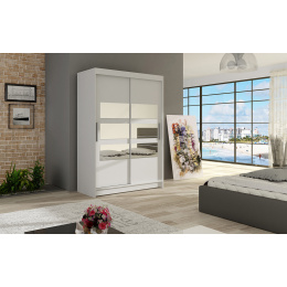 Moderní a elegantní design skříně osloví i náročné zákazníky. Eleganci podtrhují dlouhé stříbrné úchyty a moderní nádech dodávají zrcadla, která jsou nalepena na dveřích skříně. Je vyrobena z lamina o síle 16 mm a hrany jsou ukončeny ABS lištou. Vodící lišty jsou vyrobeny z odolného hliníku a splňují požadavky pro každodenní užívání. Díky svému uspořádání poskytuje dostatek úložného prostoru. Skvěle se hodí do ložnice, předsíně, dětského, nebo studentského pokoje. Skříň je dodávána v demontu a součástí je montážní plánek včetně všech potřebných spojovacích materiálů. Vyobrazené dekorace nejsou v ceně.