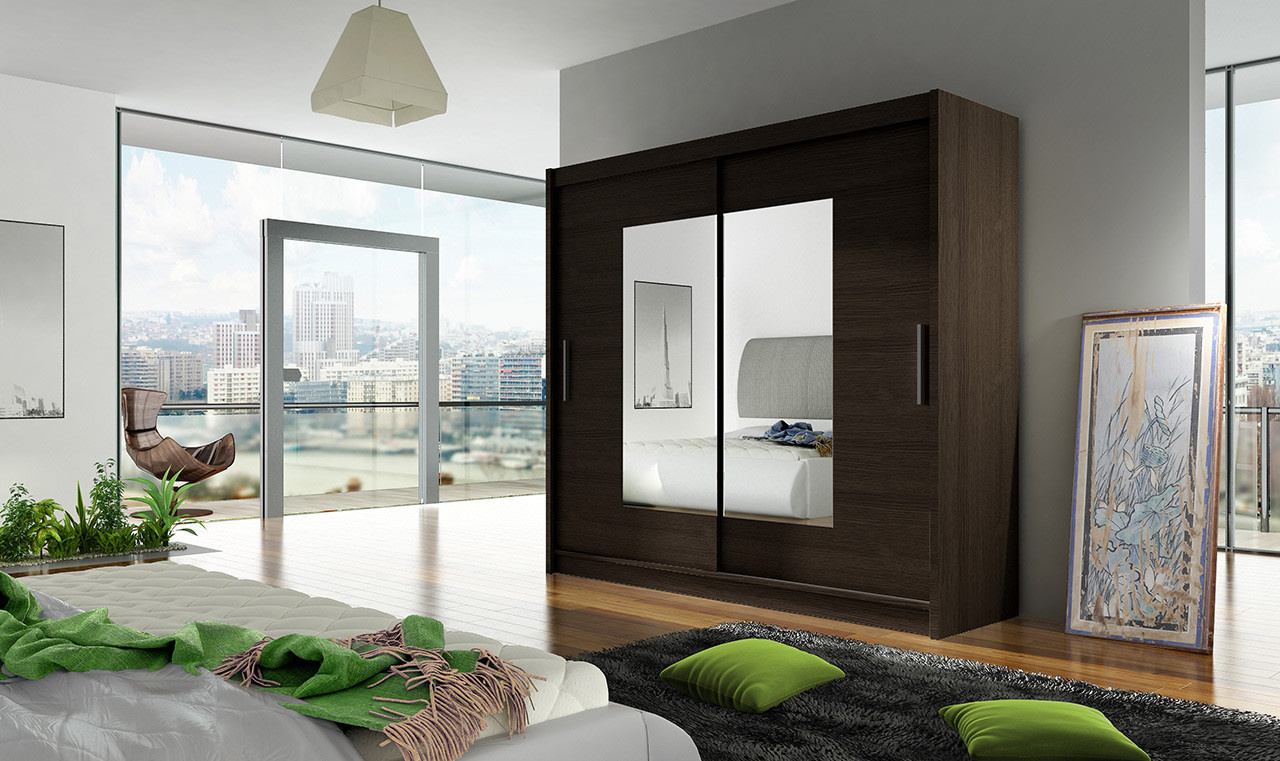 Skříň Berger s posuvnými dveřmi, je vyrobena z kvalitního lamina o síle 16 mm a hrany jsou ukončeny ABS lištou. Vodící lišty jsou vyrobeny z odolného hliníku a splňují požadavky pro každodenní užívání. Skříň je doplněna zrcadly, která jsou umístěna na středu dveří a místnost opticky zvětší a prosvětlí. Nabízíme ji ve čtyřech odstínech. Díky svým rozměrům a uspořádání poskytuje dostatek úložného prostoru. Skříň je dodávána v demontu a součástí je montážní plánek včetně všech potřebných spojovacích materiálů. Vyobrazené dekorace nejsou v ceně.