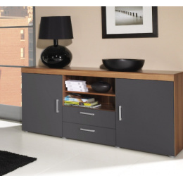 Komoda Samba je vyrobena z kvalitního lamina, které je odolné vůči poškrábání, vlhkosti a vysokým teplotám. Je vhodným doplňkem k bytové stěně Samba, kterou také najdete v naší nabídce. Součástí komody jsou 2 zásuvky, 3 police a 2x dvířka. Díky svým rozměrům a uspořádání poskytuje dostatek úložného prostoru a variabilní použití. Je dodávána v demontu a součástí je montážní plánek včetně všech potřebných spojovacích materiálů. Vyobrazené dekorace nejsou v ceně zboží.