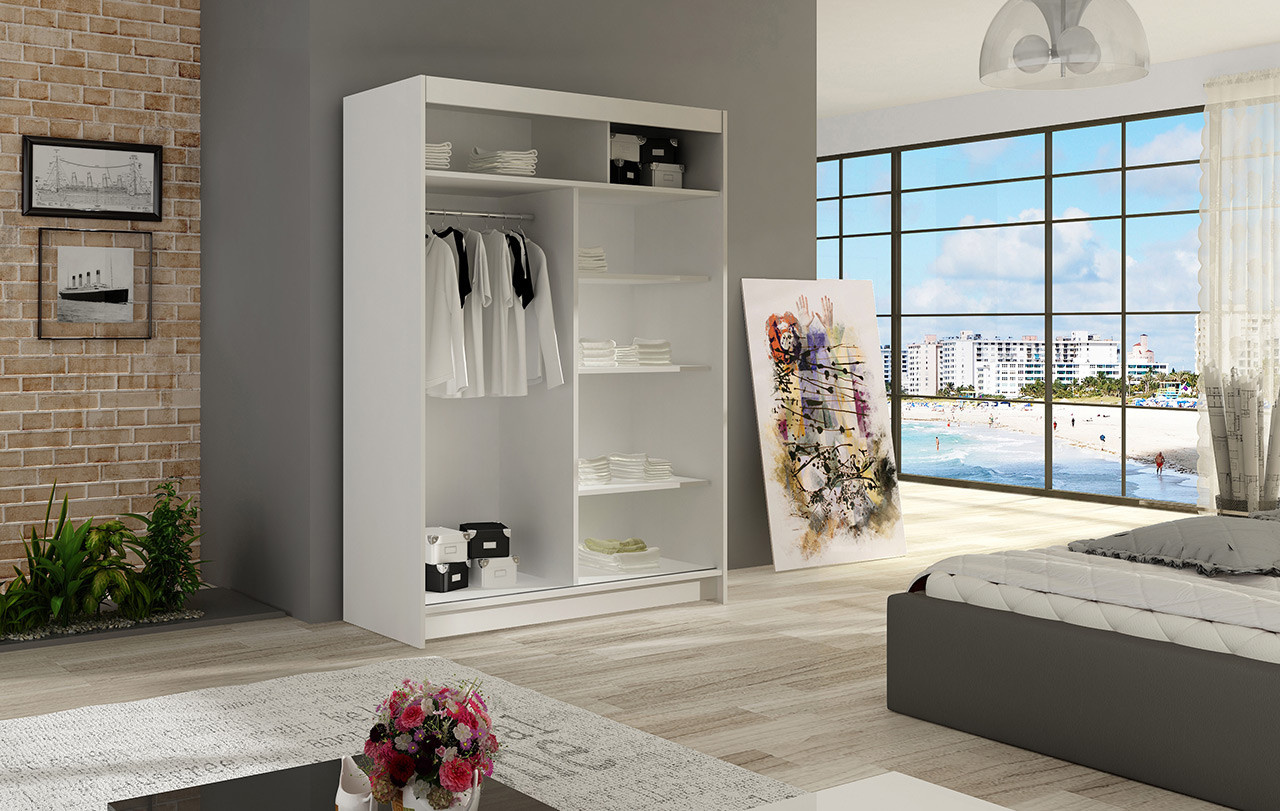 Jednoduchý a elegantní design skříně Mikado osloví i náročné zákazníky. Je vyrobena z lamina o síle 16 mm a hrany jsou ukončeny ABS lištou. Vodící lišty jsou vyrobeny z odolného hliníku a splňují požadavky pro každodenní užívání. Díky svému uspořádání poskytuje dostatek úložného prostoru. Skvěle se hodí do ložnice, předsíně, dětského, nebo studentského pokoje. Skříň je dodávána v demontu a součástí je montážní plánek včetně všech potřebných spojovacích materiálů. Vyobrazené dekorace nejsou v ceně.