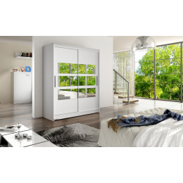 Jednoduchý a elegantní design skříně osloví i náročné zákazníky. Eleganci podtrhují dlouhé stříbrné úchyty a zrcadla, která jsou nalepena na dveřích skříně. Je vyrobena z lamina o síle 16 mm a hrany jsou ukončeny ABS lištou. Vodící lišty jsou vyrobeny z odolného hliníku a splňují požadavky pro každodenní užívání. Díky svému uspořádání poskytuje dostatek úložného prostoru a zrcadlo prostor opticky zvětší a prosvětlí. Skvěle se hodí do ložnice, předsíně, dětského, nebo studentského pokoje. Skříň je dodávána v demontu a součástí je montážní plánek včetně všech potřebných spojovacích materiálů. Vyobrazené dekorace nejsou v ceně.