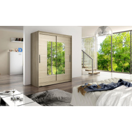 Jednoduchý a elegantní design skříně osloví i náročné zákazníky. Eleganci podtrhují dlouhé stříbrné úchyty a zrcadla, která jsou nalepena na dveřích skříně. Je vyrobena z lamina o síle 16 mm a hrany jsou ukončeny ABS lištou. Vodící lišty jsou vyrobeny z odolného hliníku a splňují požadavky pro každodenní užívání. Díky svému uspořádání poskytuje dostatek úložného prostoru. Skvěle se hodí do ložnice, předsíně, dětského, nebo studentského pokoje. Skříň je dodávána v demontu a součástí je montážní plánek včetně všech potřebných spojovacích materiálů. Vyobrazené dekorace nejsou v ceně.