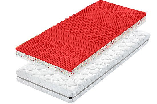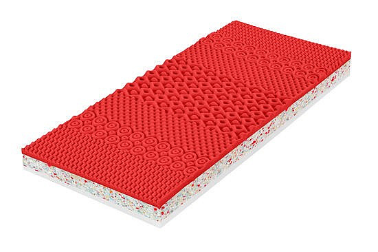 Matrace je oboustranná, takže si můžete zvolit tuhost podle svých preferencí – bílá strana s tuhostí 8 a růžová strana s tuhostí 9. Jádro tvoří tři vrstvy pěny Flexifoam. Bílá strana Flexi Classic z neprofilované pěny je pružná a prodyšná, zatímco růžová strana Flexi Relax má 7 anatomických zón a nabízí jemný masážní efekt. Střední vrstva zajišťuje pevnost a dlouhou životnost matrace.
