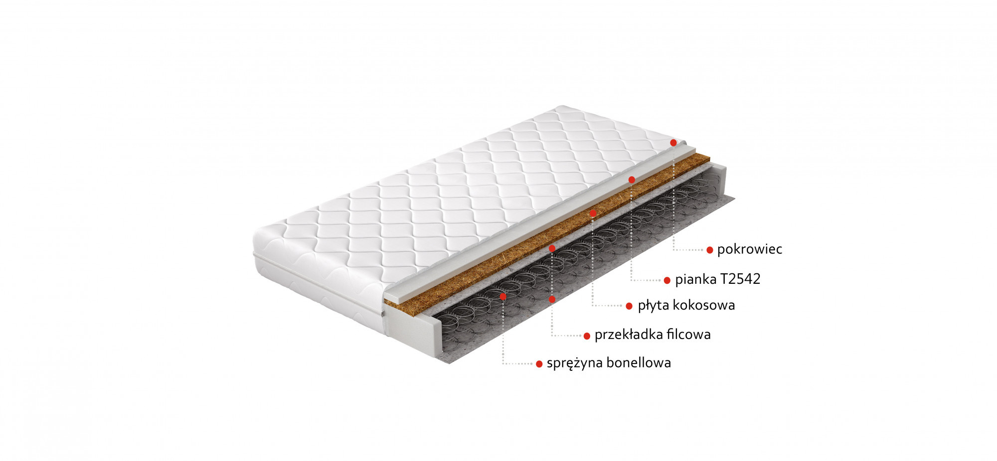 Zárukou dobrého nočního spánku je dokonale vybraná matrace. Víme, jak důležitá je tato volba, proto vám představujeme matraci Ola bonell. Bonell pružina je zárukou, že se matrace během používání nedeformuje, což je nesmírně důležité pro pohodlí spánku. Bonellová pružina je pokryta plstěnou podložkou, která je navíc překryta kokosovou deskou a pěnou T2542. To vše je uzavřeno v odnímatelném krytu.