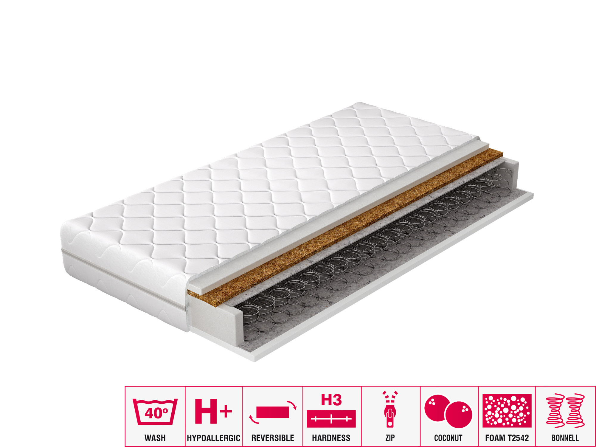 Zárukou dobrého nočního spánku je dokonale vybraná matrace. Víme, jak důležitá je tato volba, proto vám představujeme matraci OSLO bonell. Bonell pružina je zárukou, že se matrace během používání nedeformuje, což je pro pohodlí při spánku nesmírně důležité. Kromě toho má matrace Oslo na dvou stranách plstěné distanční vložky, které chrání pružiny. Dvojstranné použití pěny T2542 dále zvyšuje pohodlí při spánku. Matrace Oslo má také kokosovou desku, která zajišťuje ještě lepší spánek. To vše je uzavřeno v odnímatelném krytu.
