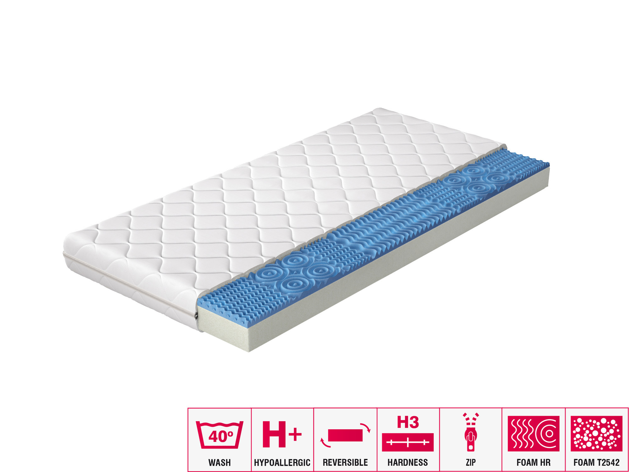 Zárukou dobrého nočního spánku je dobře zvolená matrace. Víme, jak důležitá je tato volba, proto vám představujeme pěnovou matraci v potahu. Použití vysoce elastické HR pěny je zárukou, že se matrace během používání nedeformuje, což je nesmírně důležité pro pohodlí při spánku. Kromě toho má pěnová matrace Lauren silnou vrstvu pěny T2542, která je ještě lepší pro pohodlí při spánku. Matrace Lauren s odnímatelným potahem je zárukou sladkých snů.