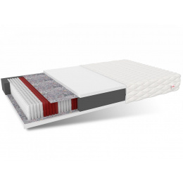 POTENZA je oboustranně pevná matrace. Je vybaven kapsovými pružinami typu multipocket, které jsou početnější než standardní kapsové formáty. Jsou vyrobeny technologií NanoHARD, drát je podprahově tvrzený, což prodlužuje jejich životnost. Pružiny rozdělují matraci do 7 zón, z nichž každá má odpovídající podporu pro určitou část těla. Fungují nezávisle na sobě, takže dva spící lidé nepociťují žádné nepohodlí způsobené pohyby toho druhého. Výplň matrace tvoří polyuretanová pěna T25 se zvýšenou odolností. Specifikace: tvrdost: H4 hard, tloušťka: 17 cm. Složení: Polyuretanová pěna T25: 2 cm, Potah: 1 cm, Výška pružiny: 12 cm, Polyuretanová pěna T25: 2 cm.