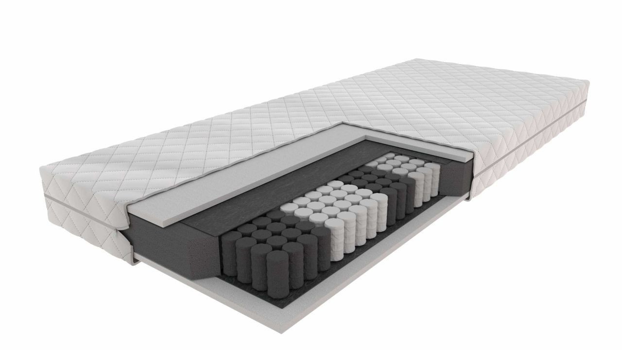 Vlastnosti matrace: Matrace s pružinami typu pocket 7 zón, z pružin, které nejsou navzájem propojené Oboustranná matrace H3/H3 Elastická polyuretanová pěna se zvýšenou hustotou Vysoká odolnost Dobrá cirkulace vzduchu Výška přibližně 16 cm Antialergická Potahy na zip s možností praní na teplotu 60oC prošívaný bílý potah, vzor prošívání vlna,