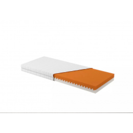 Matrace z kvalitní pěny je díky speciálnímu zámkovému systému vyrobena bez použití lepidel. Jádro je složeno z polyuretanových desek o nižší (bílo-žlutá barva pěny) a vyšší (růžovo- oranžová barva pěny) tuhosti, což umožňuje výběr měkčí a tvrdší strany matrace. Komfort ložné polochy u měkčí strany je zvýšen tvarovaným průřezem, který zajišťuje lepší odvětrávání povrchu.Matrace je opatřena snímatelným potahem na zip.Doporučená nosnost pro 1 osobu je 110 kg. Celková výška matrace v potahu je 16 cm.