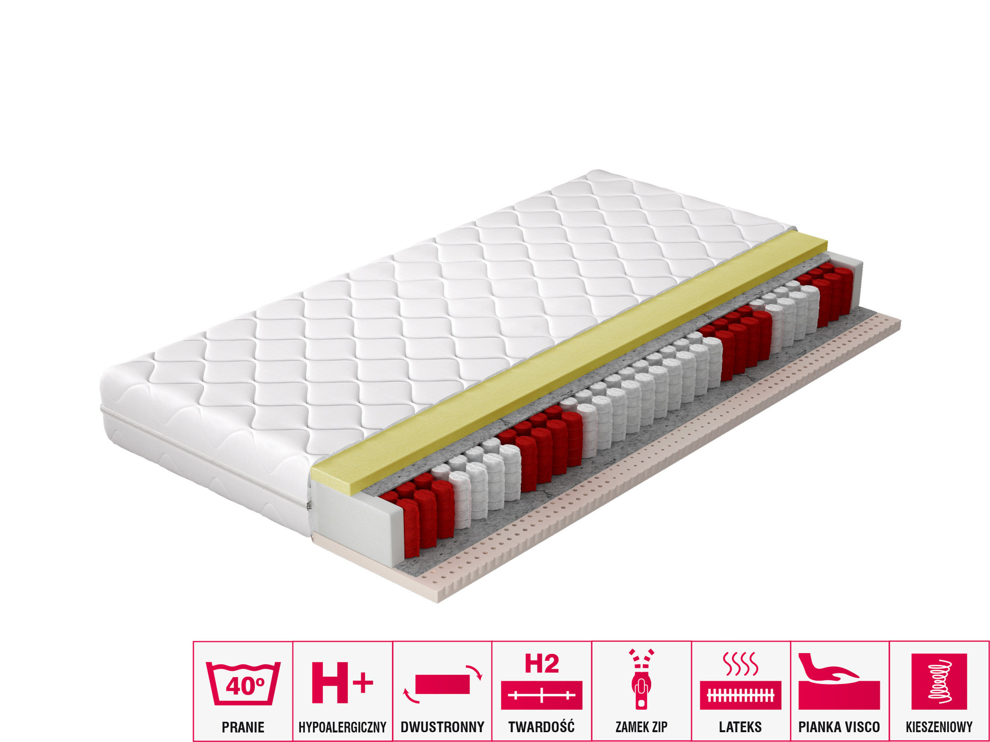 Obvykle si neuvědomujeme, jak důležitá je zdravá páteř. Necitlivost nebo bolest v nohách a pažích, bolesti hlavy - to jsou jen některé z potíží způsobených problémy se zády. Lze jim předcházet sportováním nebo výběrem správné matrace na spaní. Kapesní matrace Palmo je naší odpovědí na vaše potřeby. Výrobek je vyroben z nejkvalitnější latexové pěny a viskoelastické pěny, stejně jako z taštičkových pružin, což je ideální způsob, jak zlepšit kvalitu vašeho spánku. Další výhodou matrace Palmo je snímatelný potah.