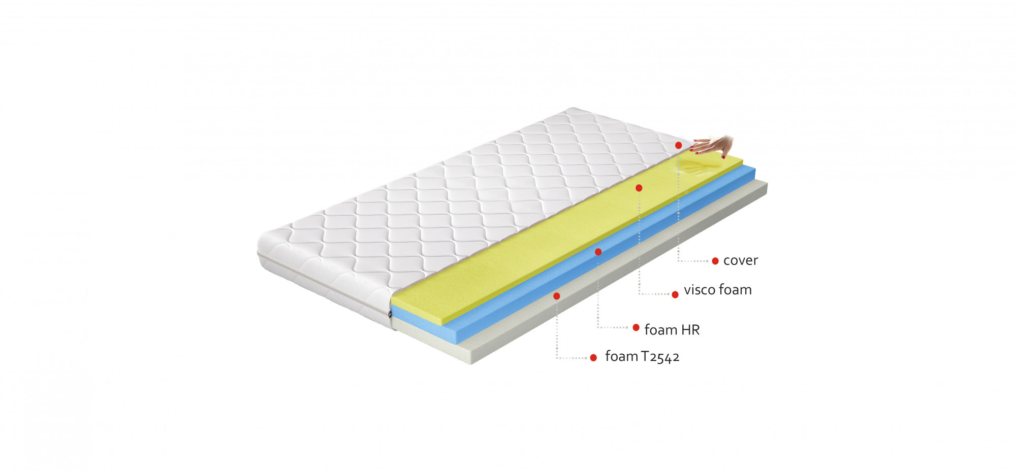 Matrace Simona je výrobek z nejkvalitnějších materiálů, ideální pro lidi, kteří si cení vynikající kvality spánku. Díky použití tří pěn je to mimořádně pohodlná matrace. Vysoce elastická HR pěna je obklopena Visco pěnou na jedné straně, která je extrémně měkká, a pěnou T2542 na druhé straně. Simona termoelastická matrace je pokryta snímatelným kašmírovým potahem.