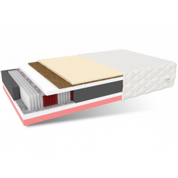 VENETO je sedmizónová taštičková matrace s vyváženou tuhostí. Zajišťuje ergonomickou polohu těla při odpočinku a podporuje klíčové tlakové body, jako jsou boky, kolena a krk. Polyuretanová pěna na obou stranách je odolná proti deformaci. Latex a kokos dokonale podpírají páteř, zajišťují zdravý spánek a vynikající cirkulaci vzduchu.Druhá použitelná strana je opatřena vrstvou pěny VISCO, která se dokonale přizpůsobuje tělu vlivem tlaku a teploty. Specifikace: tvrdost: H4 hard; H3 medium hard, tloušťka: 22 cm. Složení: kokosová vložka: 1 cm, perforovaný latex: 2 cm, polyuretanová pěna T25: 2 cm, potah: 1 cm, výška pružiny: 12 cm, termoplastická pěna VISCO: 2 cm, polyuretanová pěna T25: 2 cm.