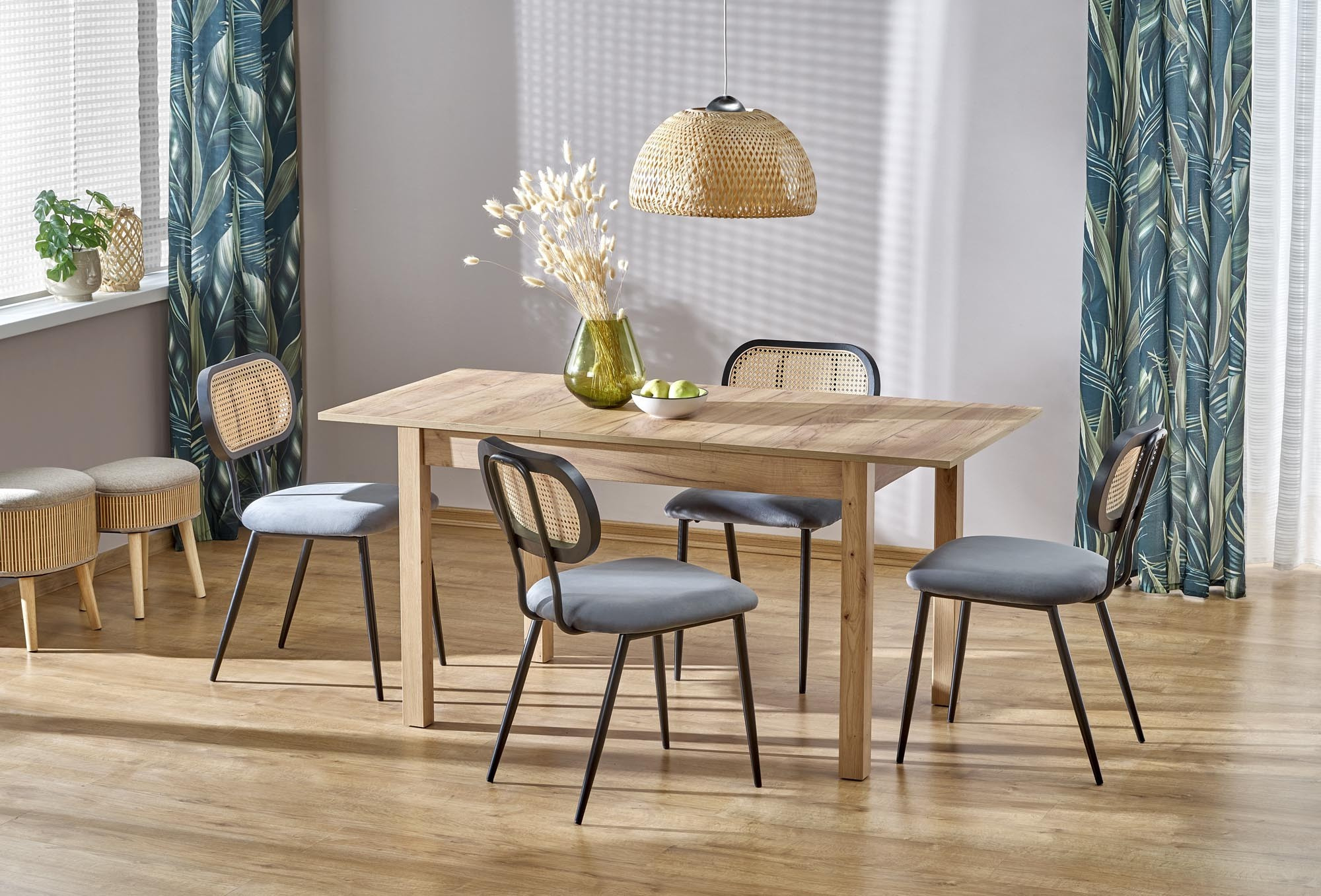 rozkládací stůl, rozměry: 118÷158/75/76 cm, materiál: deska - laminovaná deska s ABS hranou, nohy - laminovaná MDF, barva: dub craft