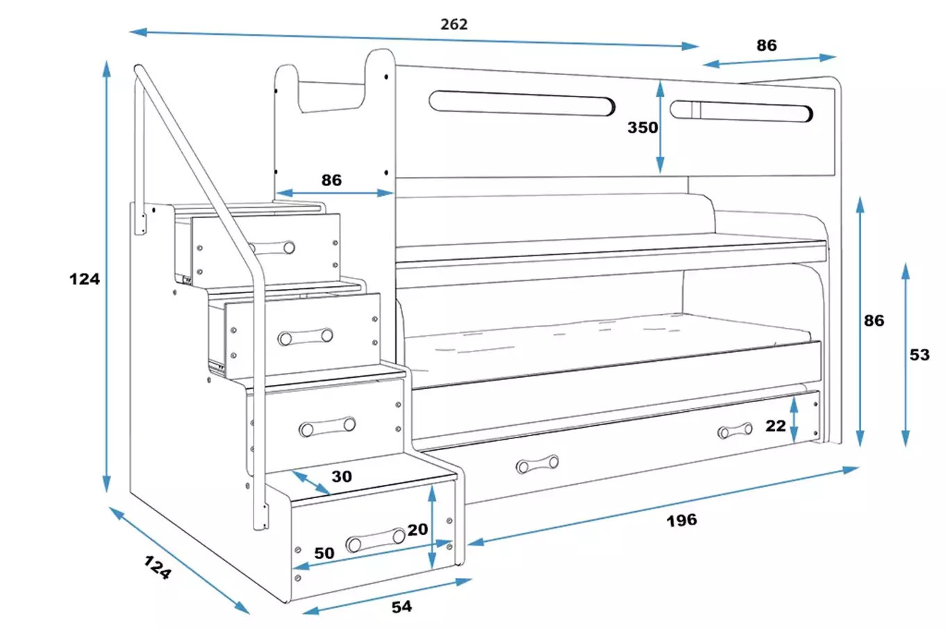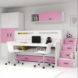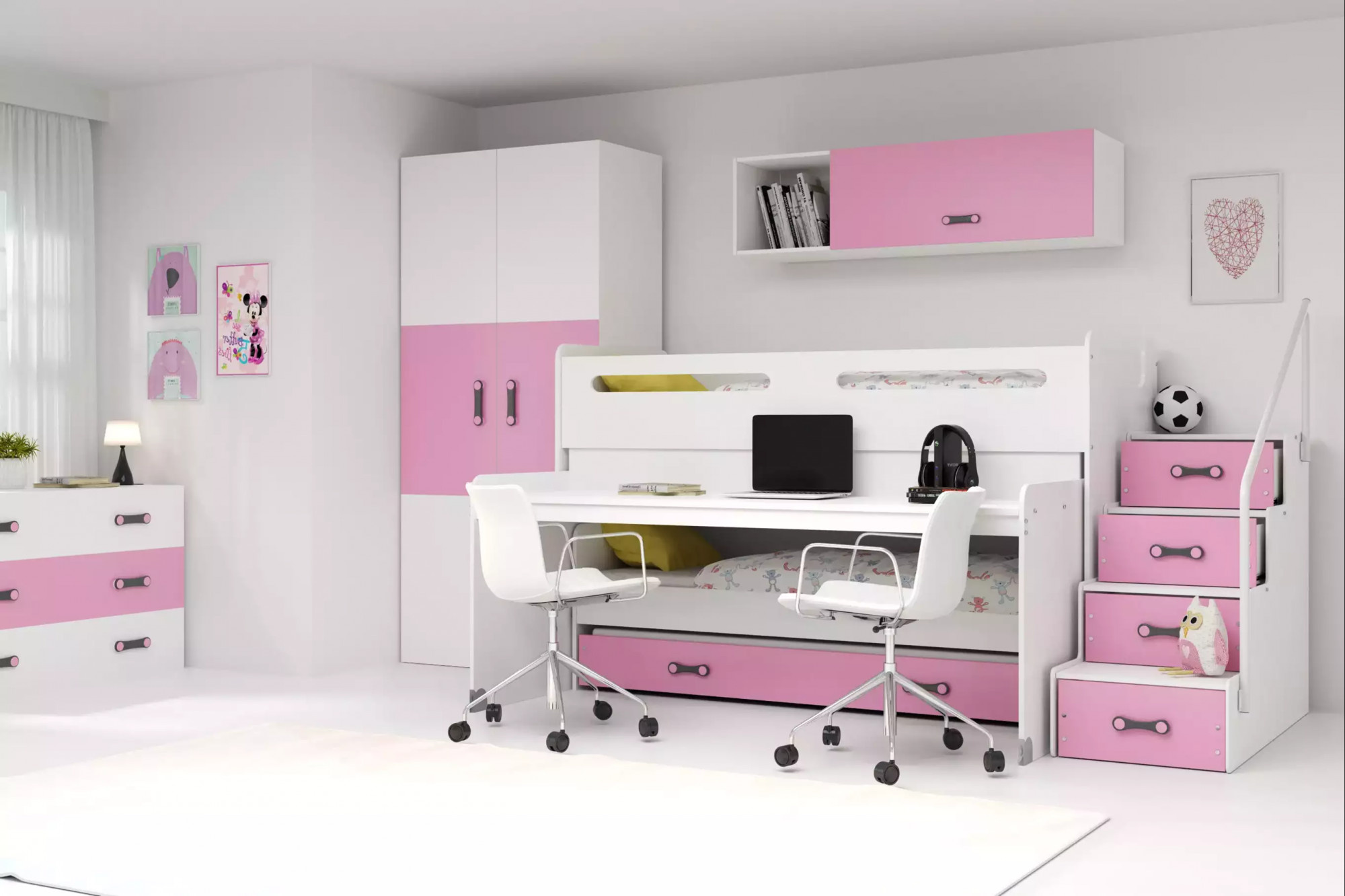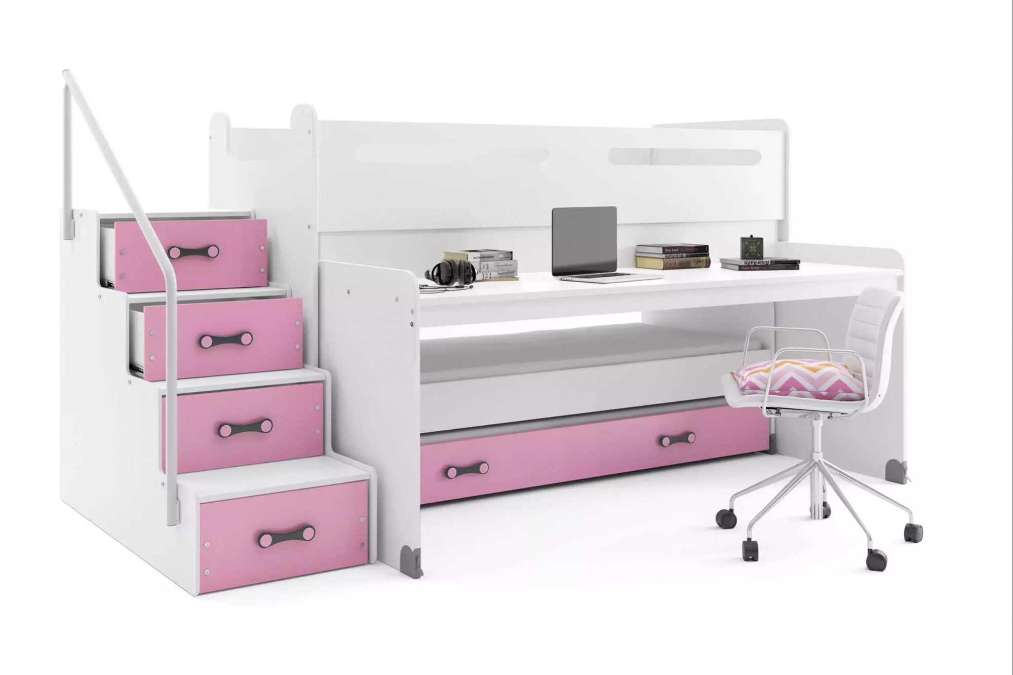 Dětská patrová postel s psacím stolem MAX 1 Růžová, bez matrace 80 X 200 , pro 3 osoby