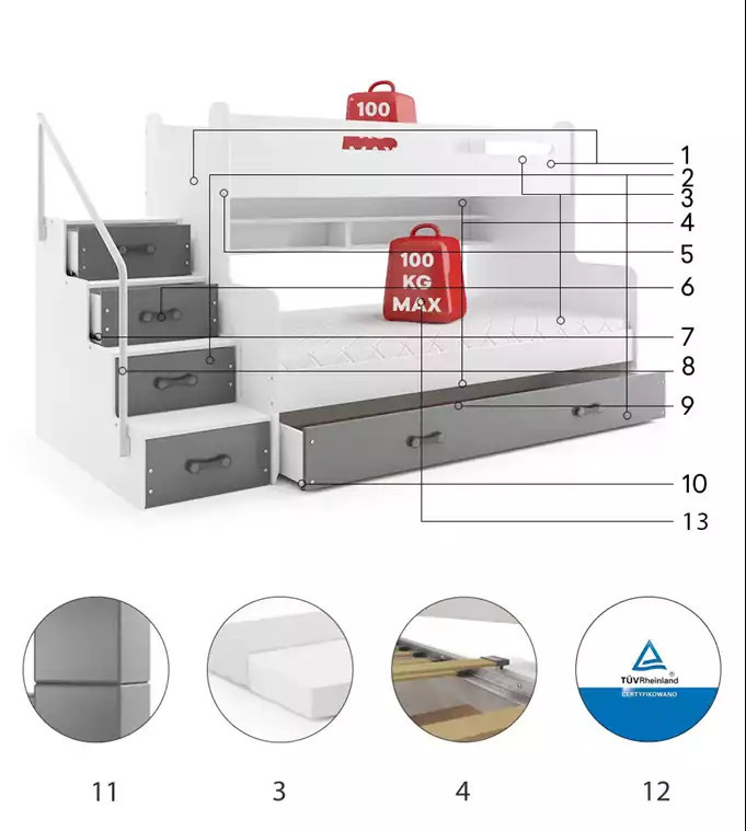 Patrová postel MAX 3 Grafit 120 X 200