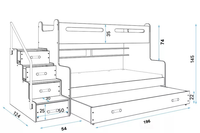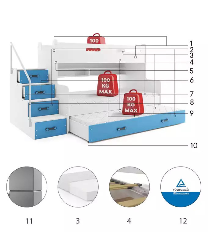 Dětská patrová postel MAX 3 Modrá bez matrace 120 X 200