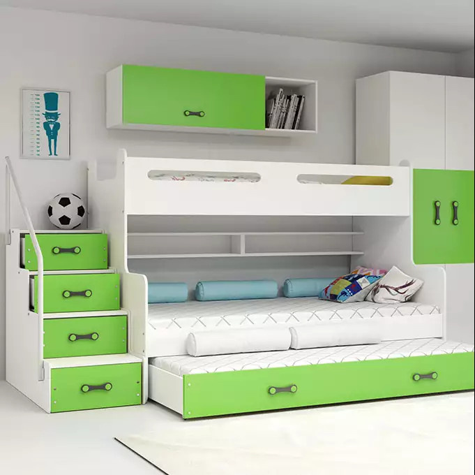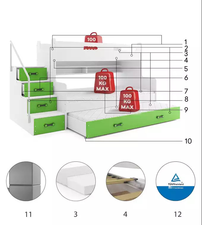 Dětská patrová postel MAX 3 Zelená, 3 místná 120 X 200