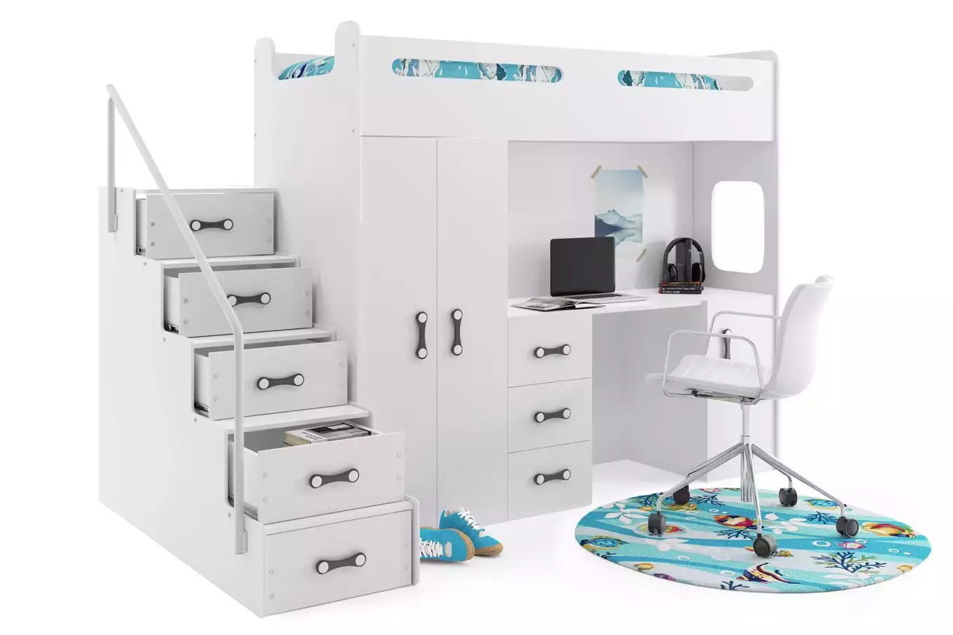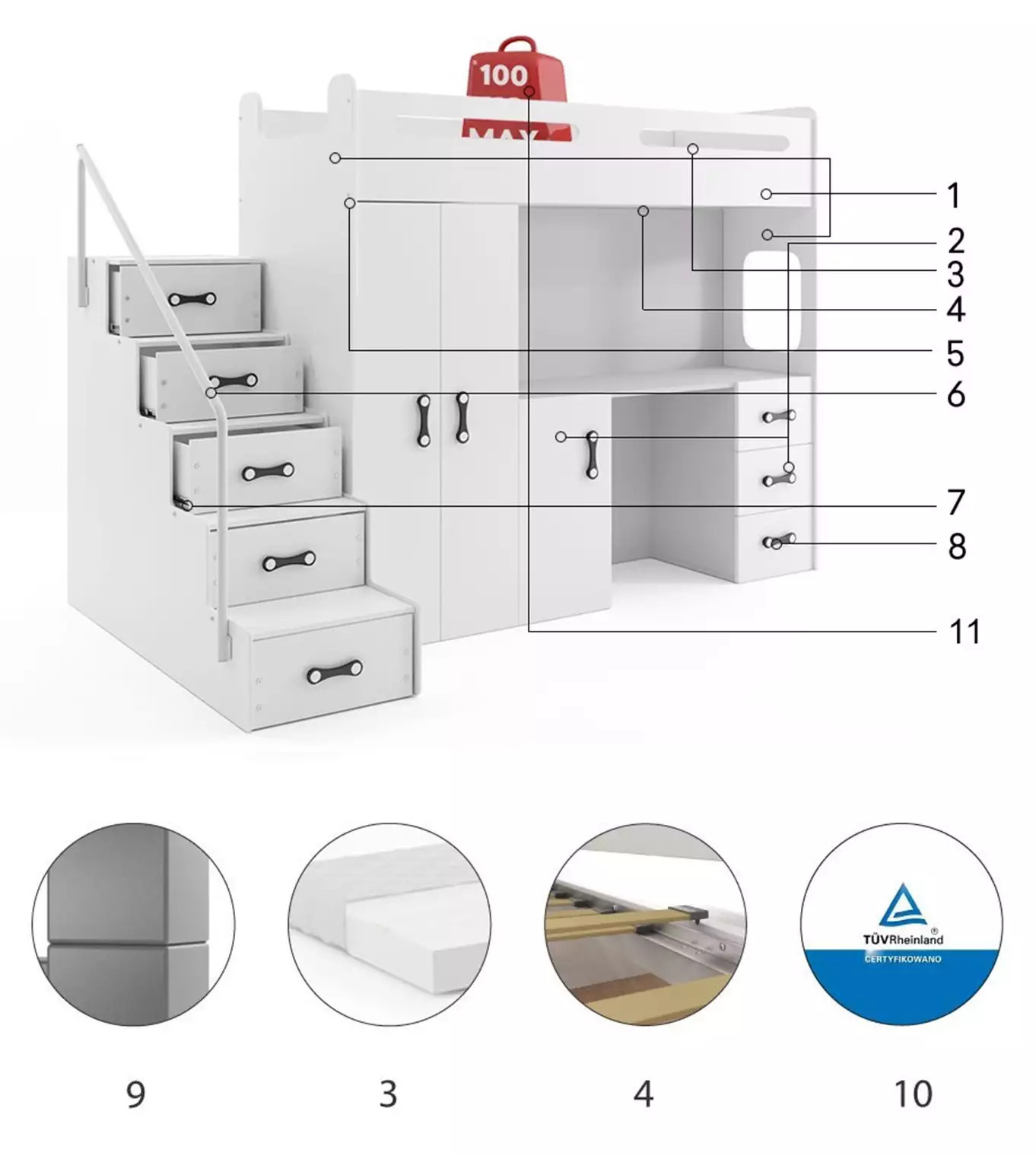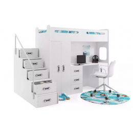 Patrová postel MAX 4 s matrací, Bílá/Bílá
