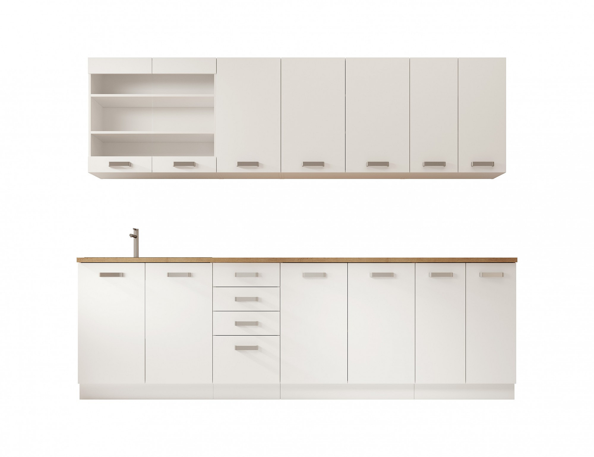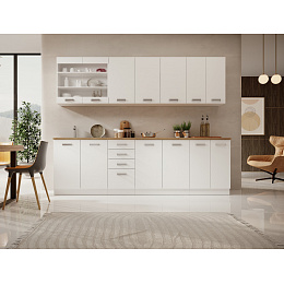 Kolekce Bubble je sada kuchyňských skříněk, skládající se z 8 modulů, které vám umožní uložit veškeré potřebné kuchyňské příslušenství. Sestava obsahuje desku, která se skvěle osvědčuje při každodenním používání. Díky spojení bílé s lancelotem se kuchyně stává útulným místem, kde je vaření velkým potěšením. Díky použití vysoce kvalitních materiálů jsou nábytek odolný a odolný vůči poškození.