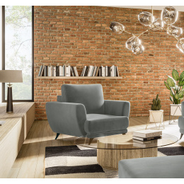 Křeslo Megis bude mít dlouhou životnost, protože sedák je vyplněn vysoce odolnou HR pěnou, která poskytuje dobrou oporu tělu a rychle se vrací do původního tvaru po vstání. Rozměry nábytku: 102 x 94 x 87 centimetrů, umožňují jeho snadné umístění do mnoha uspořádání. Megis má nadčasový design a vysoké opěrky s jemným prošíváním. Navíc, charakteristickým rysem tohoto křesla jsou jeho 13centimetrové nohy, které jsou vyrobeny z černé oceli. K dispozici je také odpovídající pohovka Megis a taburet.