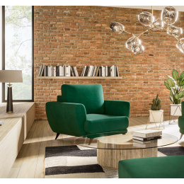 Křeslo Megis bude mít dlouhou životnost, protože sedák je vyplněn vysoce odolnou HR pěnou, která poskytuje dobrou oporu tělu a rychle se vrací do původního tvaru po vstání. Rozměry nábytku: 102 x 94 x 87 centimetrů, umožňují jeho snadné umístění do mnoha uspořádání. Megis má nadčasový design a vysoké opěrky s jemným prošíváním. Navíc, charakteristickým rysem tohoto křesla jsou jeho 13centimetrové nohy, které jsou vyrobeny z černé oceli. K dispozici je také odpovídající pohovka Megis a taburet.