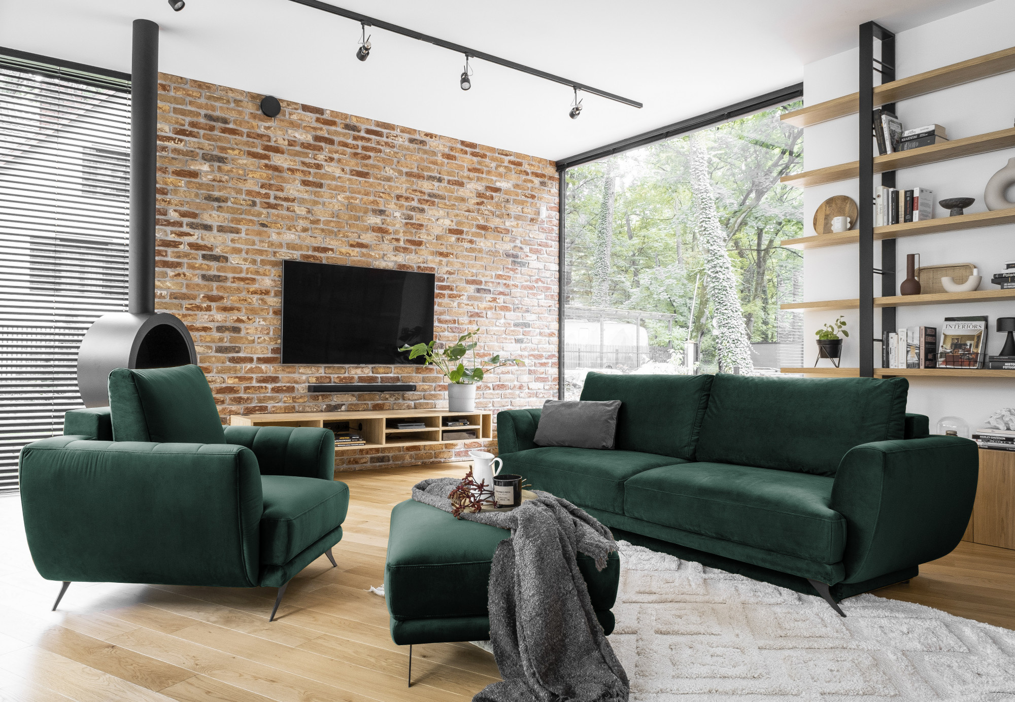 Megis lounge nábytek je velmi praktická sada, která zahrnuje: pohovku s rozměry - 250 x 95 x 90 cm, křeslo - 102 x 94 x 87 cm a taburet - 82 x 68 x 42 cm. Tento nábytek se vyznačuje vysokým komfortem používání, protože jeho sedáky jsou vyrobeny z vysoce elastické HR pěny. Vlnité pružiny uvnitř nábytku také přispívají k jeho úrovni pohodlí. Nohy pohovky, taburetu a křesla jsou z černé oceli s výškou až 13 centimetrů. Jednoduchý tvar, vysoké opěrky rukou neobvyklého tvaru a jemné prošívání jsou charakteristickými rysy sady Megis. Kromě vizuálních vlastností je sedací souprava také funkční. Pohovka je vybavena rozkládacím mechanismem typu DL, díky kterému získáme spací plochu o rozměrech: 200 x 145 cm. Pohovka má také úložný prostor na lůžkoviny umístěný v boxu. Každý prvek sady lze také zakoupit samostatně. Křeslo Megis, taburet a pohovka jsou vše, co potřebujete pro klidný odpočinek.