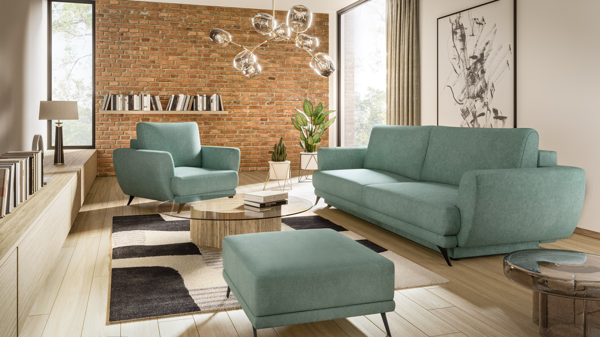 Megis lounge nábytek je velmi praktická sada, která zahrnuje: pohovku s rozměry - 250 x 95 x 90 cm, křeslo - 102 x 94 x 87 cm a taburet - 82 x 68 x 42 cm. Tento nábytek se vyznačuje vysokým komfortem používání, protože jeho sedáky jsou vyrobeny z vysoce elastické HR pěny. Vlnité pružiny uvnitř nábytku také přispívají k jeho úrovni pohodlí. Nohy pohovky, taburetu a křesla jsou z černé oceli s výškou až 13 centimetrů. Jednoduchý tvar, vysoké opěrky rukou neobvyklého tvaru a jemné prošívání jsou charakteristickými rysy sady Megis. Kromě vizuálních vlastností je sedací souprava také funkční. Pohovka je vybavena rozkládacím mechanismem typu DL, díky kterému získáme spací plochu o rozměrech: 200 x 145 cm. Pohovka má také úložný prostor na lůžkoviny umístěný v boxu. Každý prvek sady lze také zakoupit samostatně. Křeslo Megis, taburet a pohovka jsou vše, co potřebujete pro klidný odpočinek.