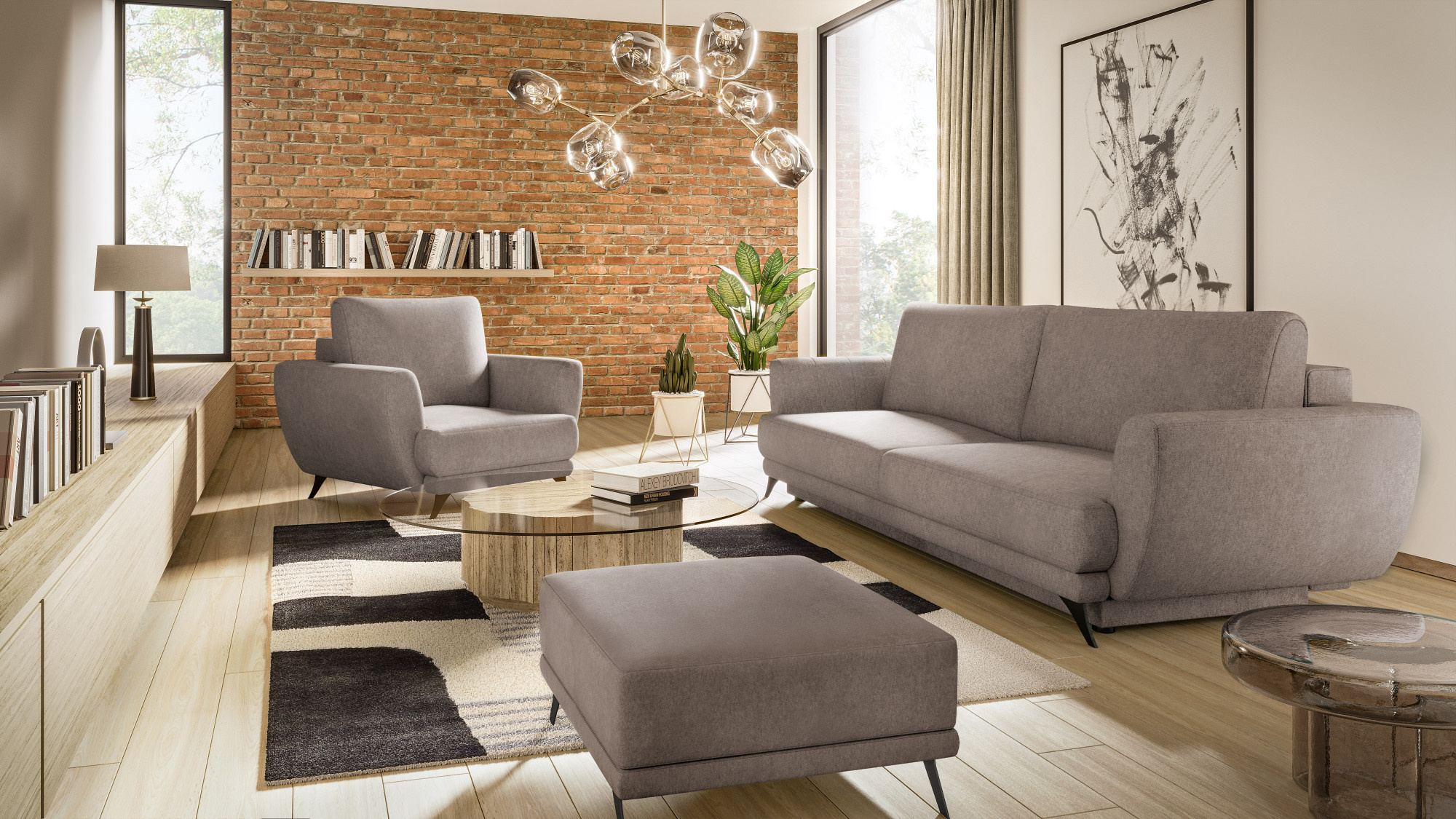 Megis lounge nábytek je velmi praktická sada, která zahrnuje: pohovku s rozměry - 250 x 95 x 90 cm, křeslo - 102 x 94 x 87 cm a taburet - 82 x 68 x 42 cm. Tento nábytek se vyznačuje vysokým komfortem používání, protože jeho sedáky jsou vyrobeny z vysoce elastické HR pěny. Vlnité pružiny uvnitř nábytku také přispívají k jeho úrovni pohodlí. Nohy pohovky, taburetu a křesla jsou z černé oceli s výškou až 13 centimetrů. Jednoduchý tvar, vysoké opěrky rukou neobvyklého tvaru a jemné prošívání jsou charakteristickými rysy sady Megis. Kromě vizuálních vlastností je sedací souprava také funkční. Pohovka je vybavena rozkládacím mechanismem typu DL, díky kterému získáme spací plochu o rozměrech: 200 x 145 cm. Pohovka má také úložný prostor na lůžkoviny umístěný v boxu. Každý prvek sady lze také zakoupit samostatně. Křeslo Megis, taburet a pohovka jsou vše, co potřebujete pro klidný odpočinek.