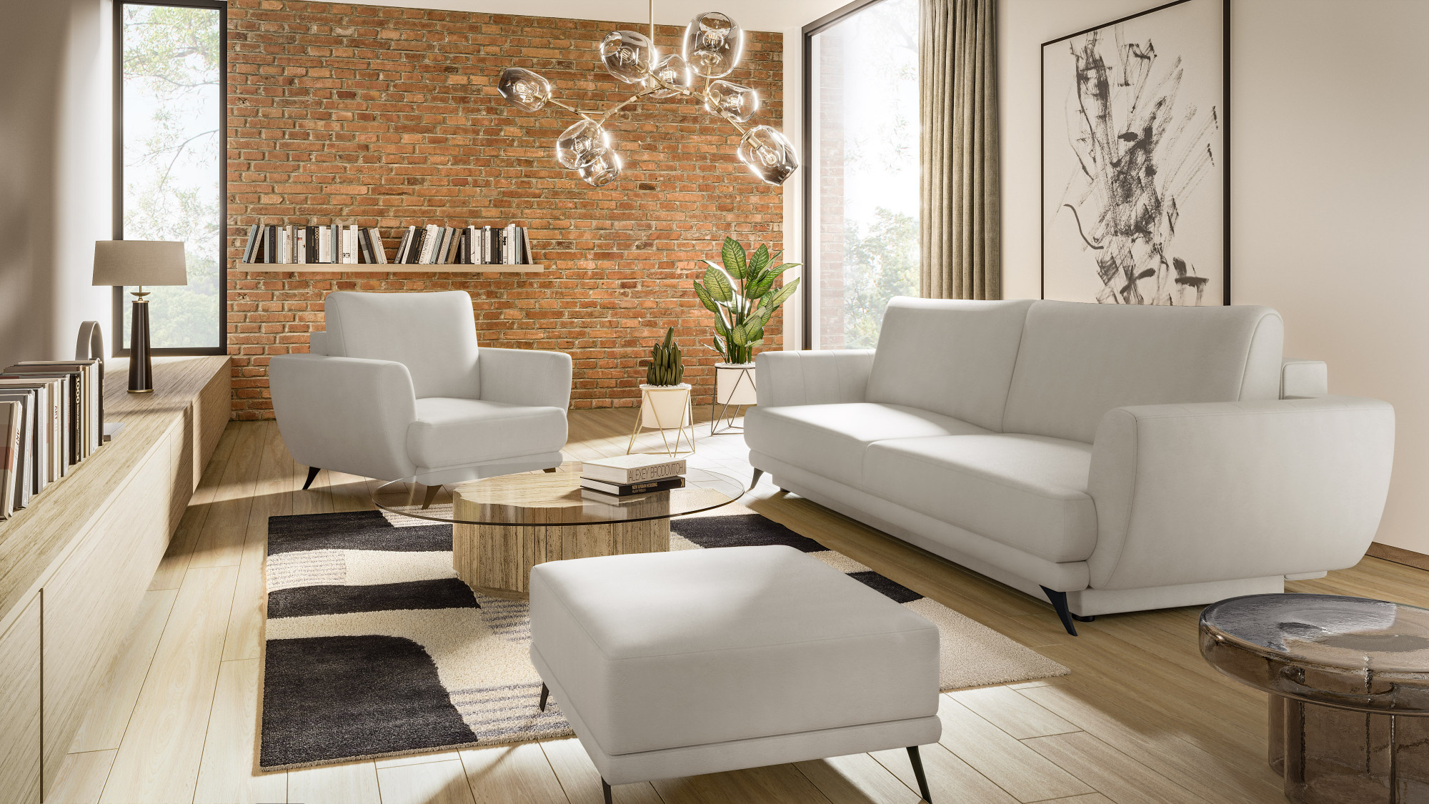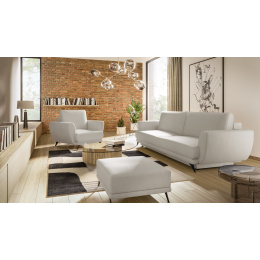 Megis lounge nábytek je velmi praktická sada, která zahrnuje: pohovku s rozměry - 250 x 95 x 90 cm, křeslo - 102 x 94 x 87 cm a taburet - 82 x 68 x 42 cm. Tento nábytek se vyznačuje vysokým komfortem používání, protože jeho sedáky jsou vyrobeny z vysoce elastické HR pěny. Vlnité pružiny uvnitř nábytku také přispívají k jeho úrovni pohodlí. Nohy pohovky, taburetu a křesla jsou z černé oceli s výškou až 13 centimetrů. Jednoduchý tvar, vysoké opěrky rukou neobvyklého tvaru a jemné prošívání jsou charakteristickými rysy sady Megis. Kromě vizuálních vlastností je sedací souprava také funkční. Pohovka je vybavena rozkládacím mechanismem typu DL, díky kterému získáme spací plochu o rozměrech: 200 x 145 cm. Pohovka má také úložný prostor na lůžkoviny umístěný v boxu. Každý prvek sady lze také zakoupit samostatně. Křeslo Megis, taburet a pohovka jsou vše, co potřebujete pro klidný odpočinek.