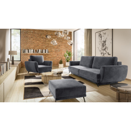 Megis lounge nábytek je velmi praktická sada, která zahrnuje: pohovku s rozměry - 250 x 95 x 90 cm, křeslo - 102 x 94 x 87 cm a taburet - 82 x 68 x 42 cm. Tento nábytek se vyznačuje vysokým komfortem používání, protože jeho sedáky jsou vyrobeny z vysoce elastické HR pěny. Vlnité pružiny uvnitř nábytku také přispívají k jeho úrovni pohodlí. Nohy pohovky, taburetu a křesla jsou z černé oceli s výškou až 13 centimetrů. Jednoduchý tvar, vysoké opěrky rukou neobvyklého tvaru a jemné prošívání jsou charakteristickými rysy sady Megis. Kromě vizuálních vlastností je sedací souprava také funkční. Pohovka je vybavena rozkládacím mechanismem typu DL, díky kterému získáme spací plochu o rozměrech: 200 x 145 cm. Pohovka má také úložný prostor na lůžkoviny umístěný v boxu. Každý prvek sady lze také zakoupit samostatně. Křeslo Megis, taburet a pohovka jsou vše, co potřebujete pro klidný odpočinek.
