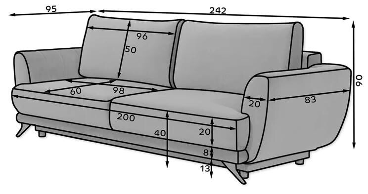 S šířkou 250 cm, maximální výškou 90 cm a hloubkou 95 cm je pohovka MEGIS dostatečně prostorná, aby poskytla pohodlí celé rodině. Výška sedu 40 cm zajišťuje pohodlné sezení pro každého člena domácnosti. Její moderní design a kvalitní materiály zaručují, že se pohovka stane stylovým doplňkem každého interiéru.