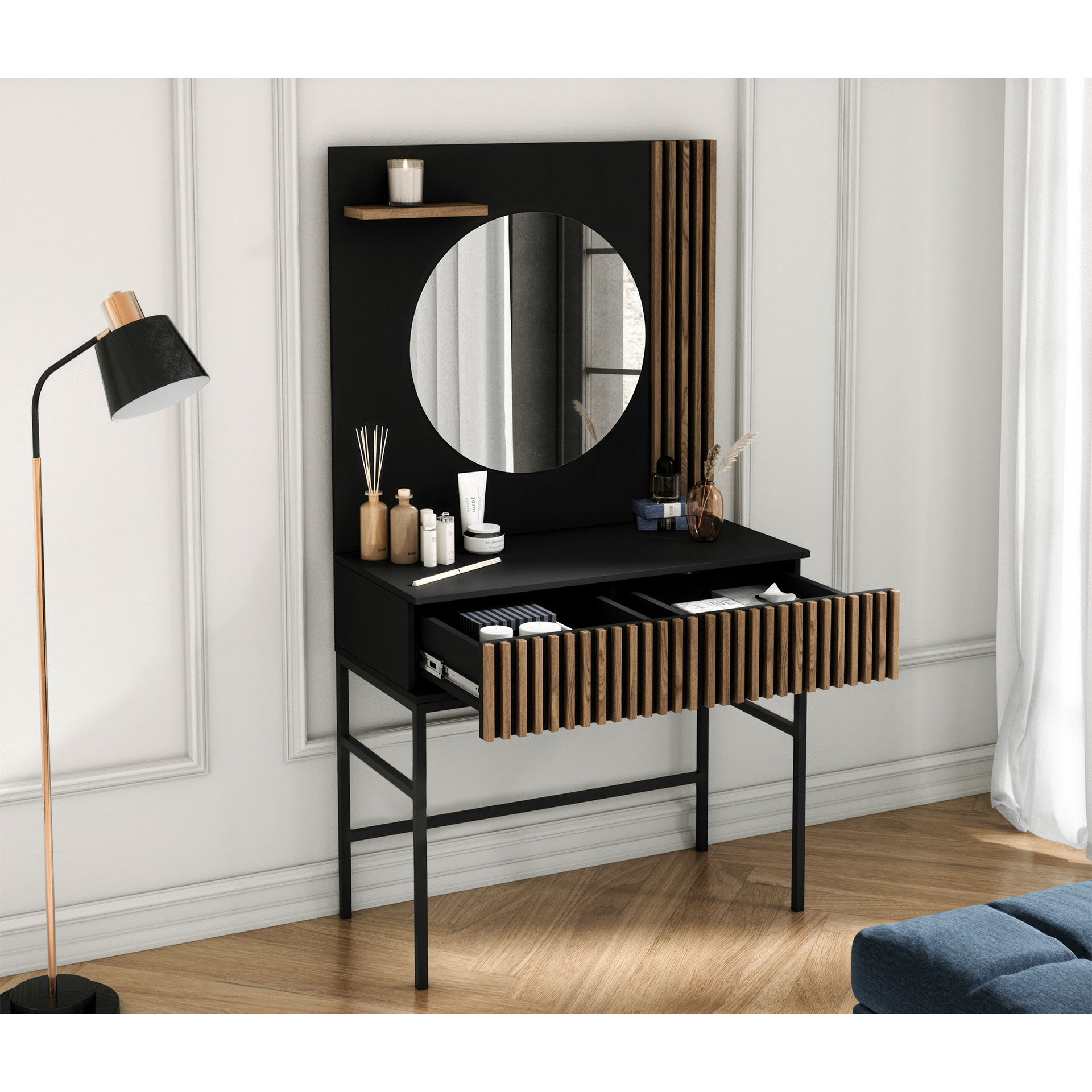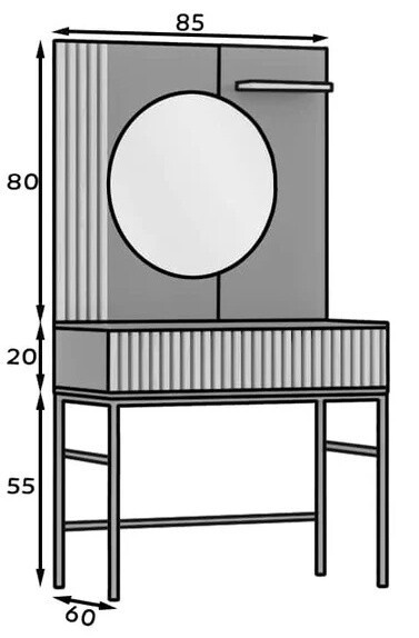 Toaletní stolek se zrcadlem MEORATI 85, Černá/Dub Artisan