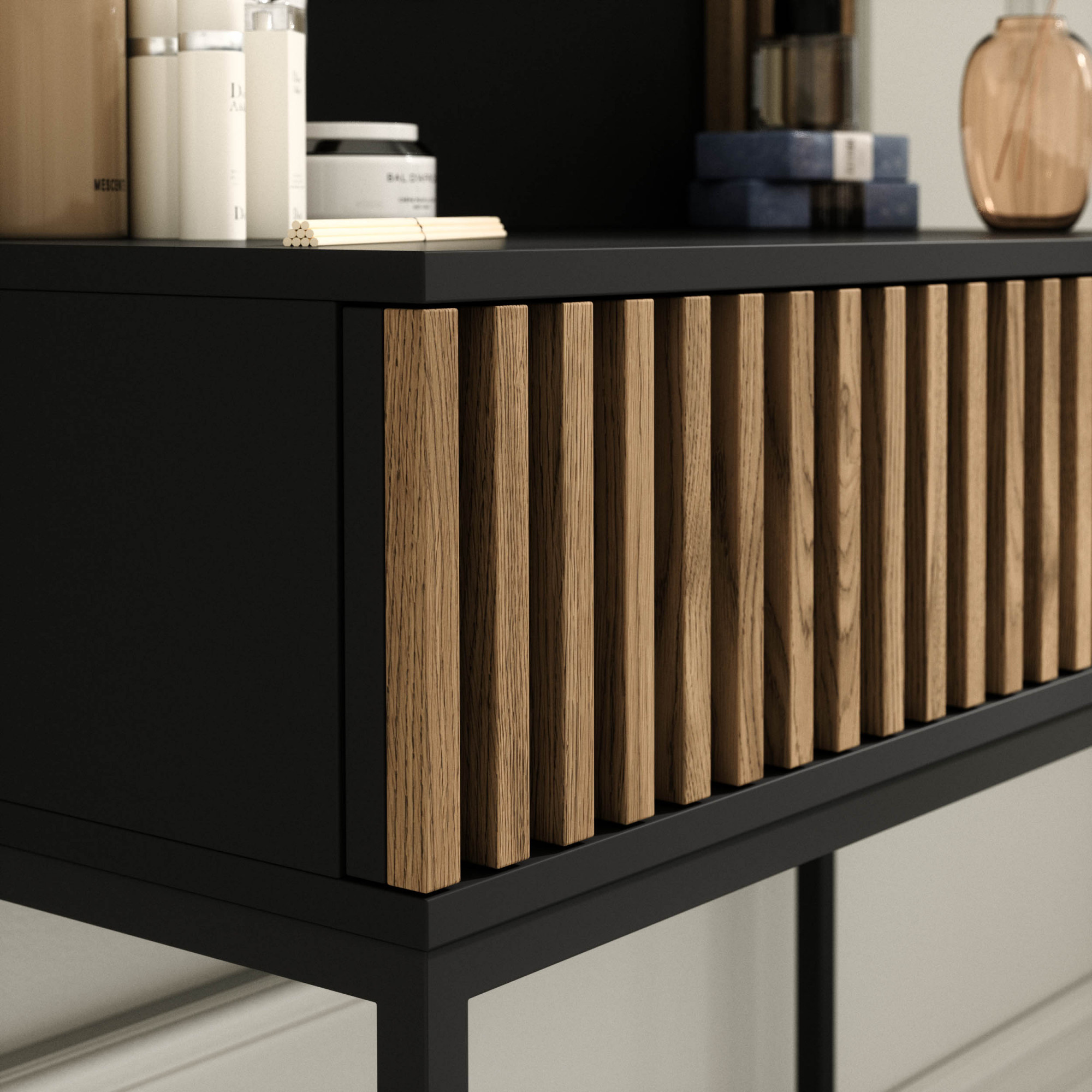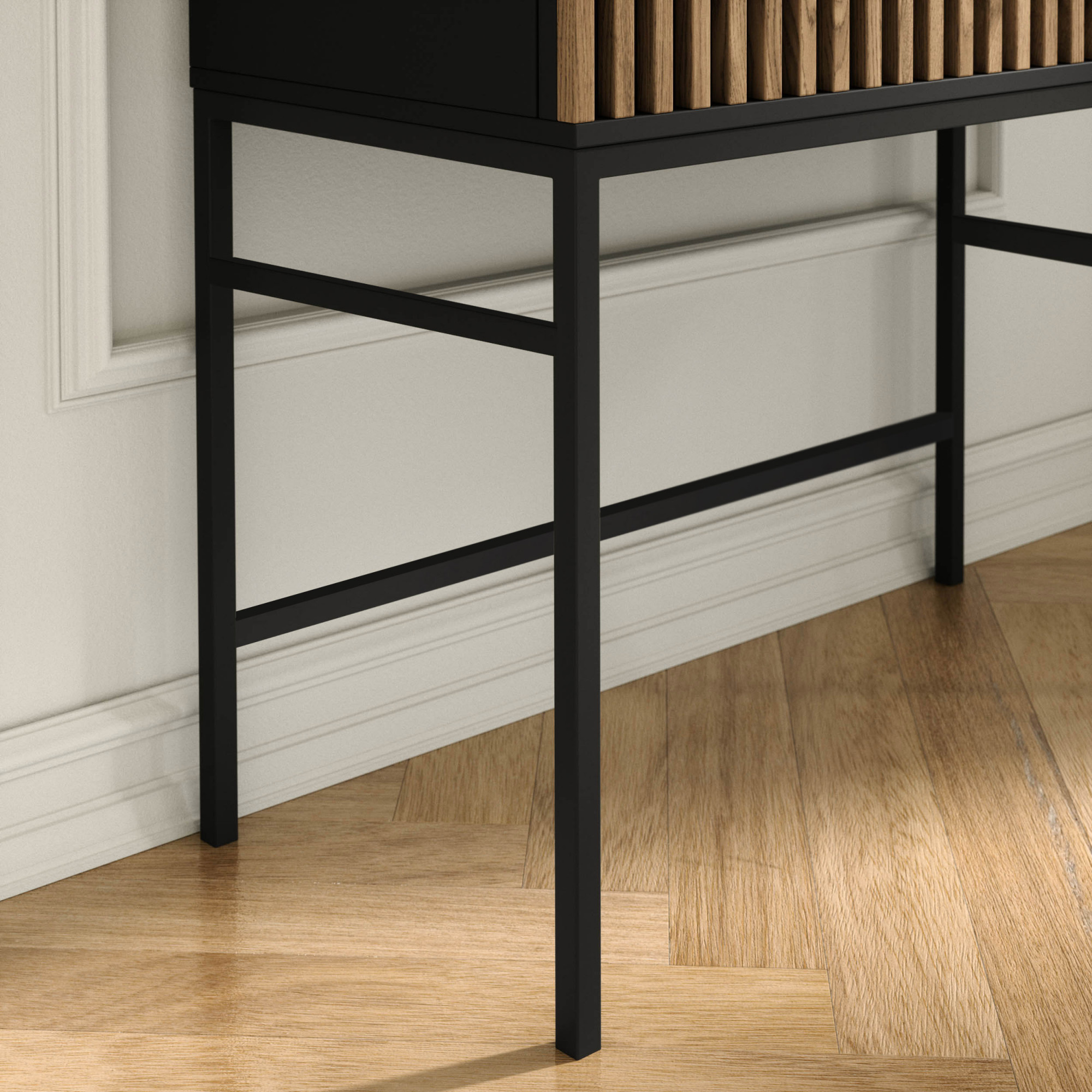 Černý noční stolek Meorati je elegantní a moderní kus nábytku, který se jistě stane stylovým doplňkem vaší ložnice. Má rozměry 40 cm do hloubky, 40 cm na šířku a 60 cm na výšku, což z něj činí kompaktní, ale přesto dostatečně prostorný úložný prostor pro různé předměty. Tento noční stolek Meorati je vyroben z masivní desky o tloušťce 16 mm, což zajišťuje jeho odolnost a stabilitu. Tělo a zásuvky jsou dokončeny ABS hranou, která nejen dodává nábytku eleganci, ale také jej chrání před poškozením, což zajišťuje dlouhodobé používání. Nohy nočního stolku Meorati jsou vyrobeny z odolného černého kovu, což mu dodává moderní charakter a zajišťuje stabilitu. S výškou 20 cm jsou ideální pro výšku postele, což umožňuje snadný přístup k uloženým věcem. Noční stolek Meorati má dva šuplíky se světlými frézovanými čely, což mu dodává jedinečné kouzlo. Tento elegantní detail upoutá pozornost a činí nábytek nejen praktickým, ale také designovým prvkem v dekoraci ložnice. Černý noční stolek Meorati vyniká svým moderním stylem, vysoce kvalitním zpracováním a funkčností. Díky svým kompaktním rozměrům a praktickým zásuvkám budete mít všechny potřebné věci na dosah. Je to ideální řešení, které kombinuje estetiku, funkčnost a odolnost.