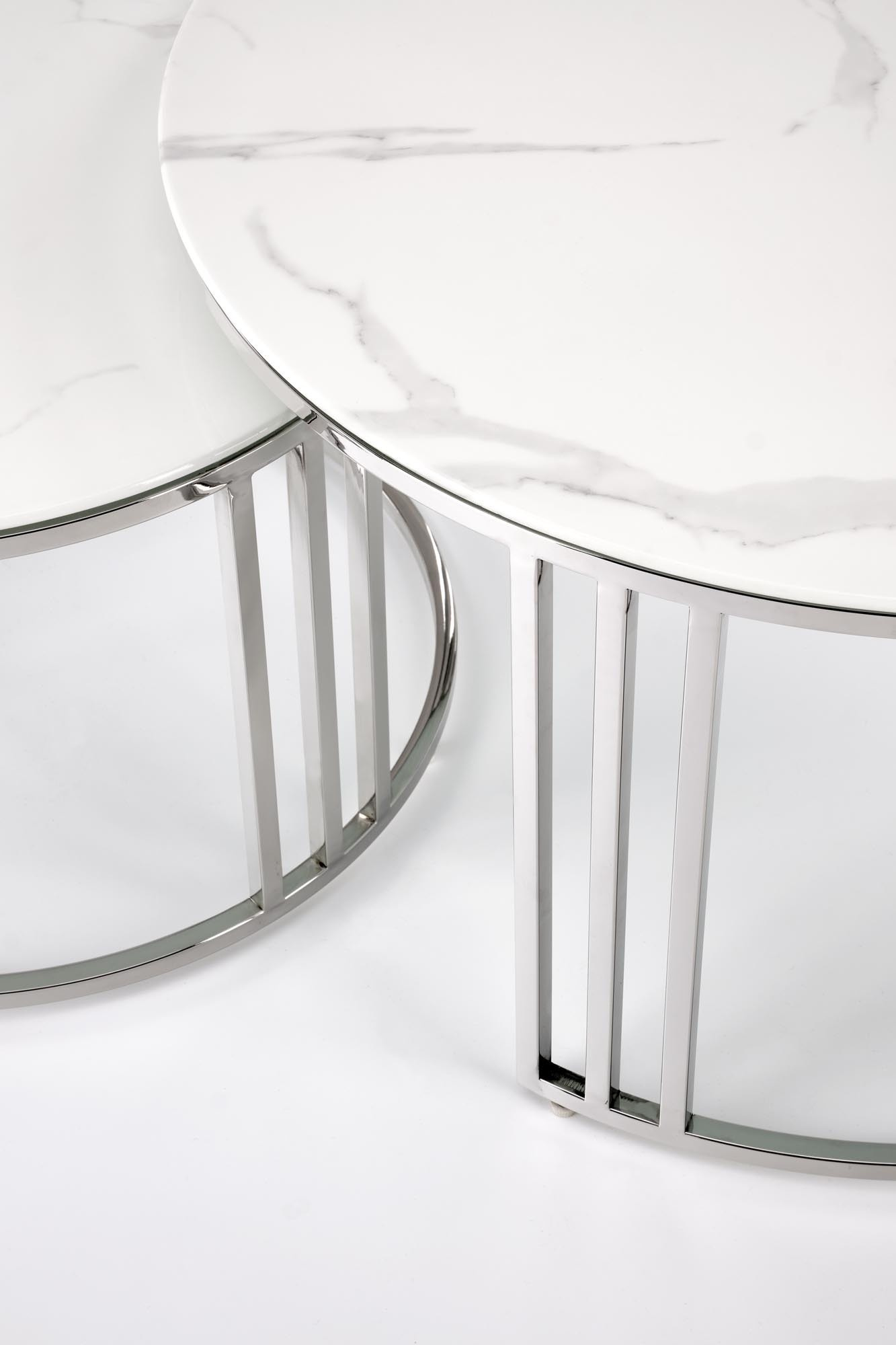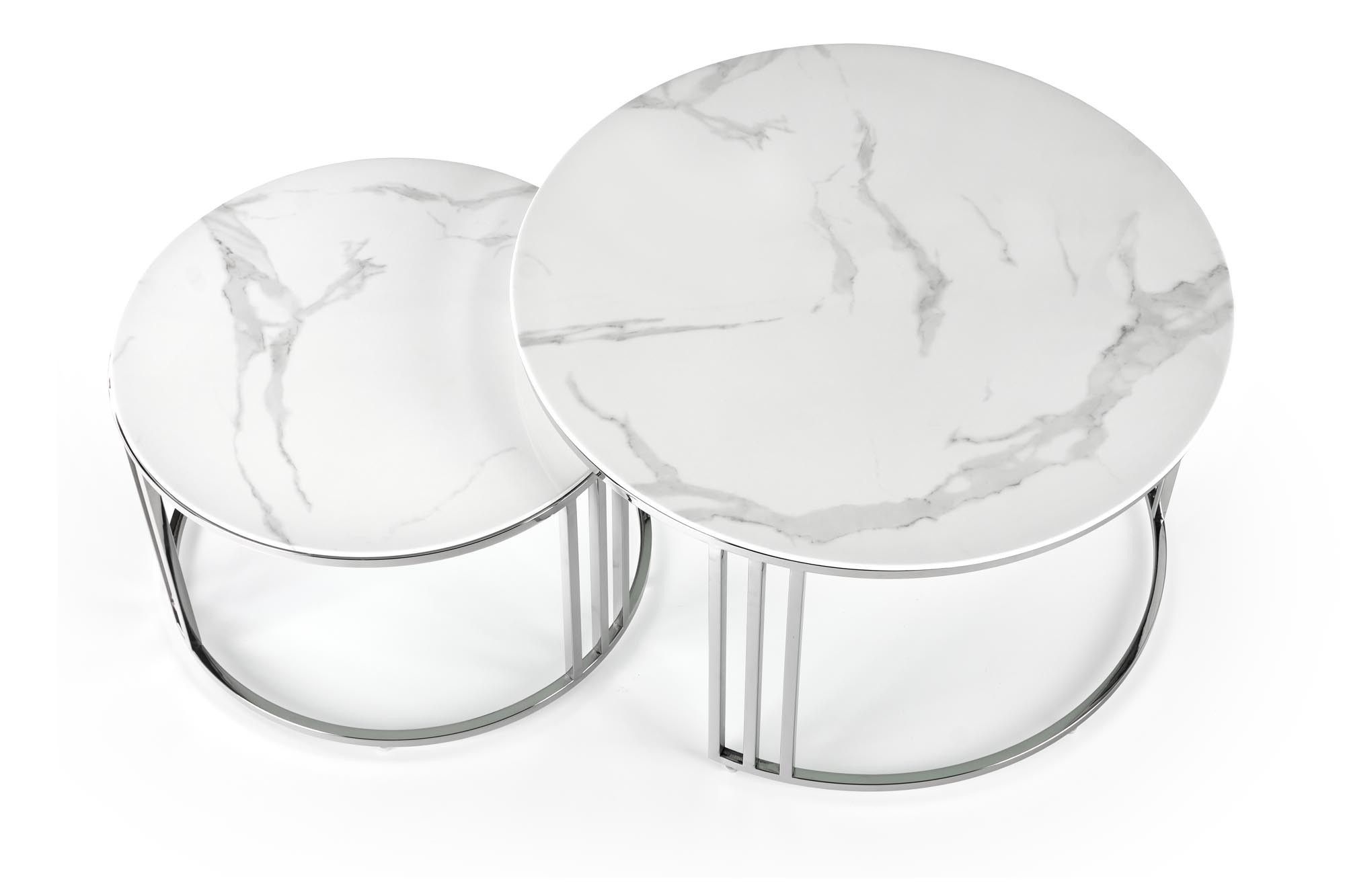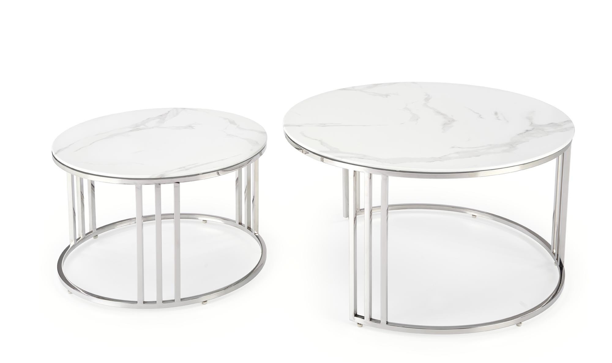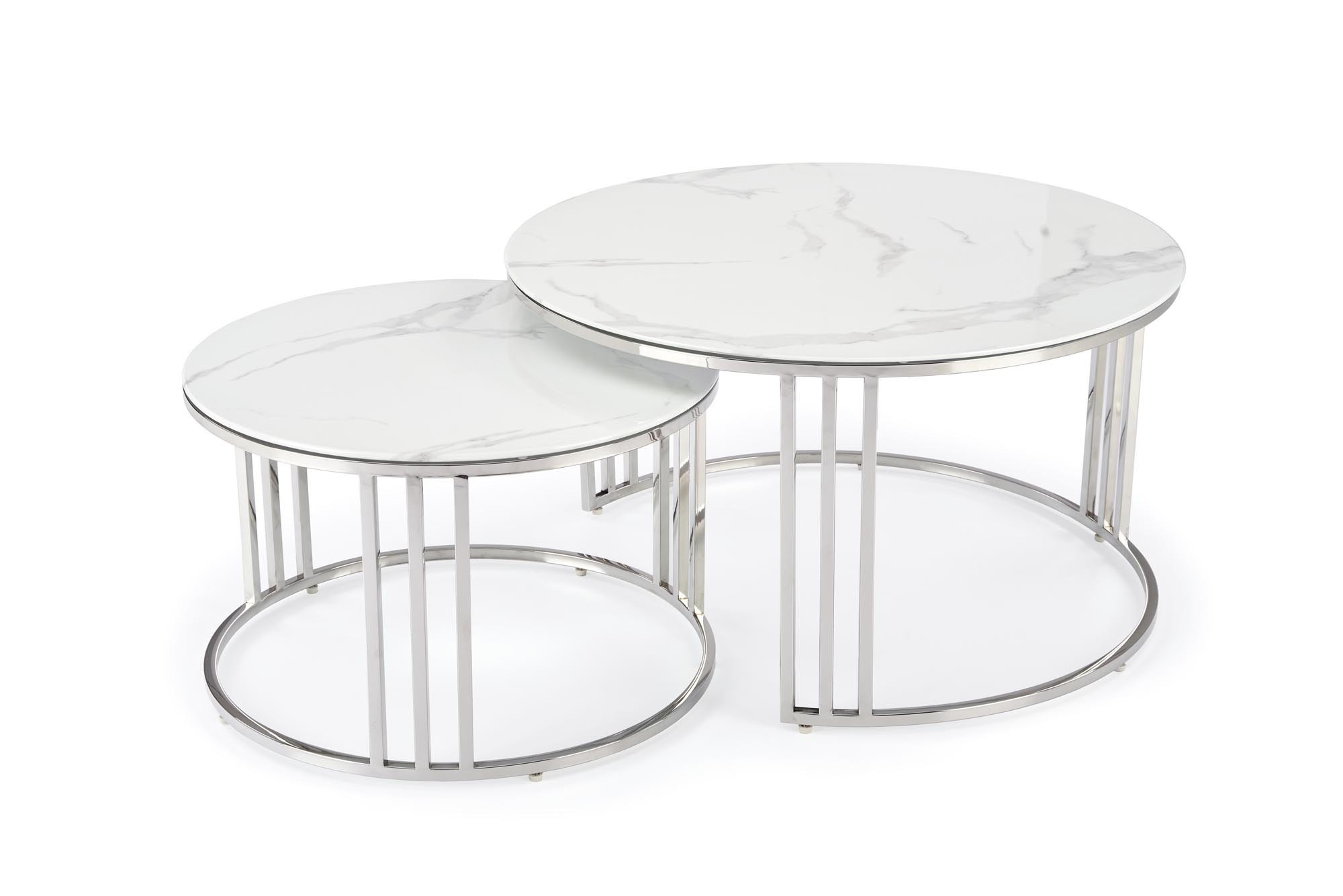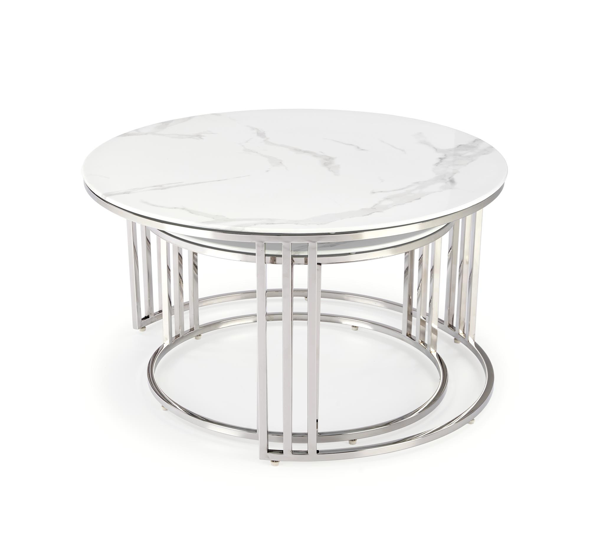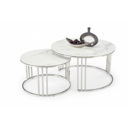 Konferenční stolek MERCURY 2 sada, stříbrná/ efekt bílého mramoru